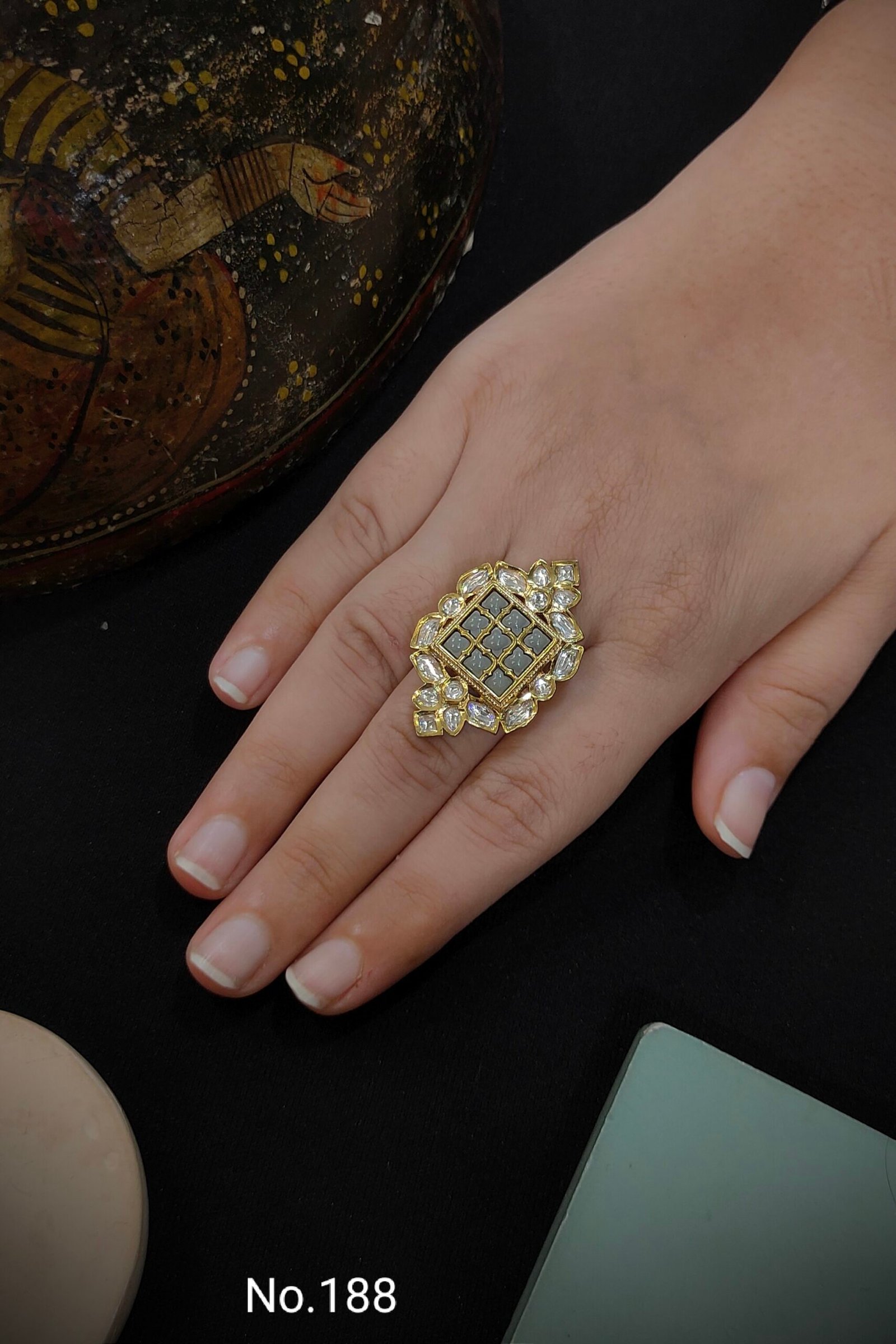 Elegant Monzonite Kundan ring featuring sparkling stones and intricate craftsmanship — a perfect blend of traditional charm and modern elegance.