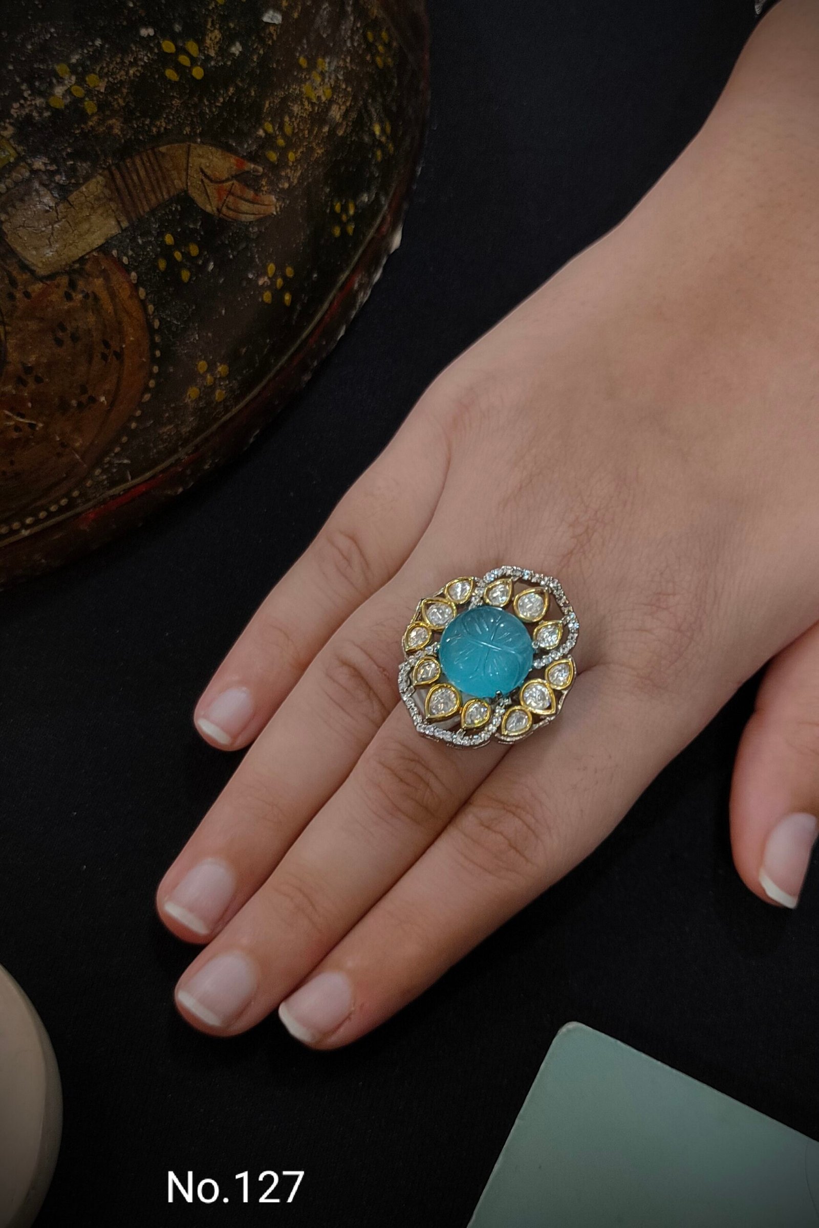 Elegant Monzonite Kundan ring featuring sparkling stones and intricate craftsmanship — a perfect blend of traditional charm and modern elegance.
