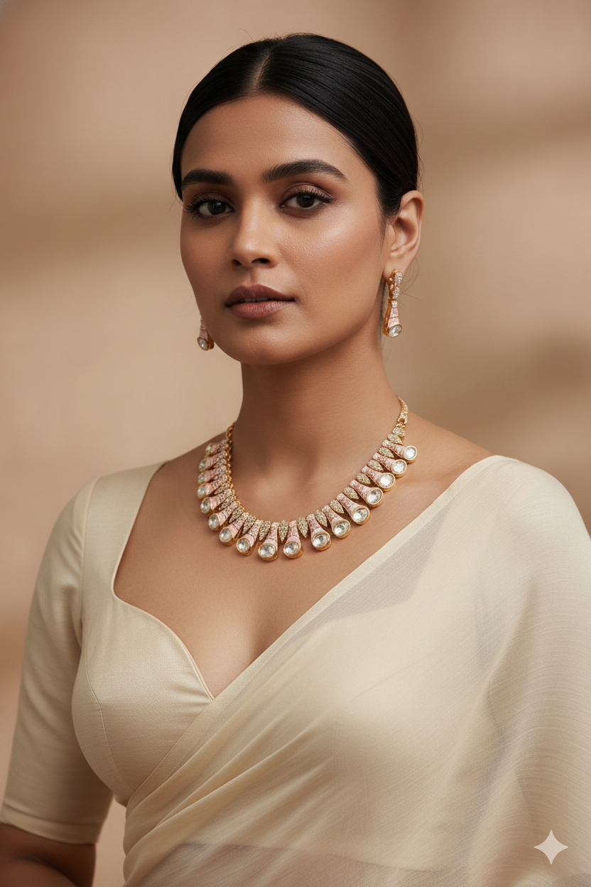 The Monzonite Kundan Set is an exquisite blend of
