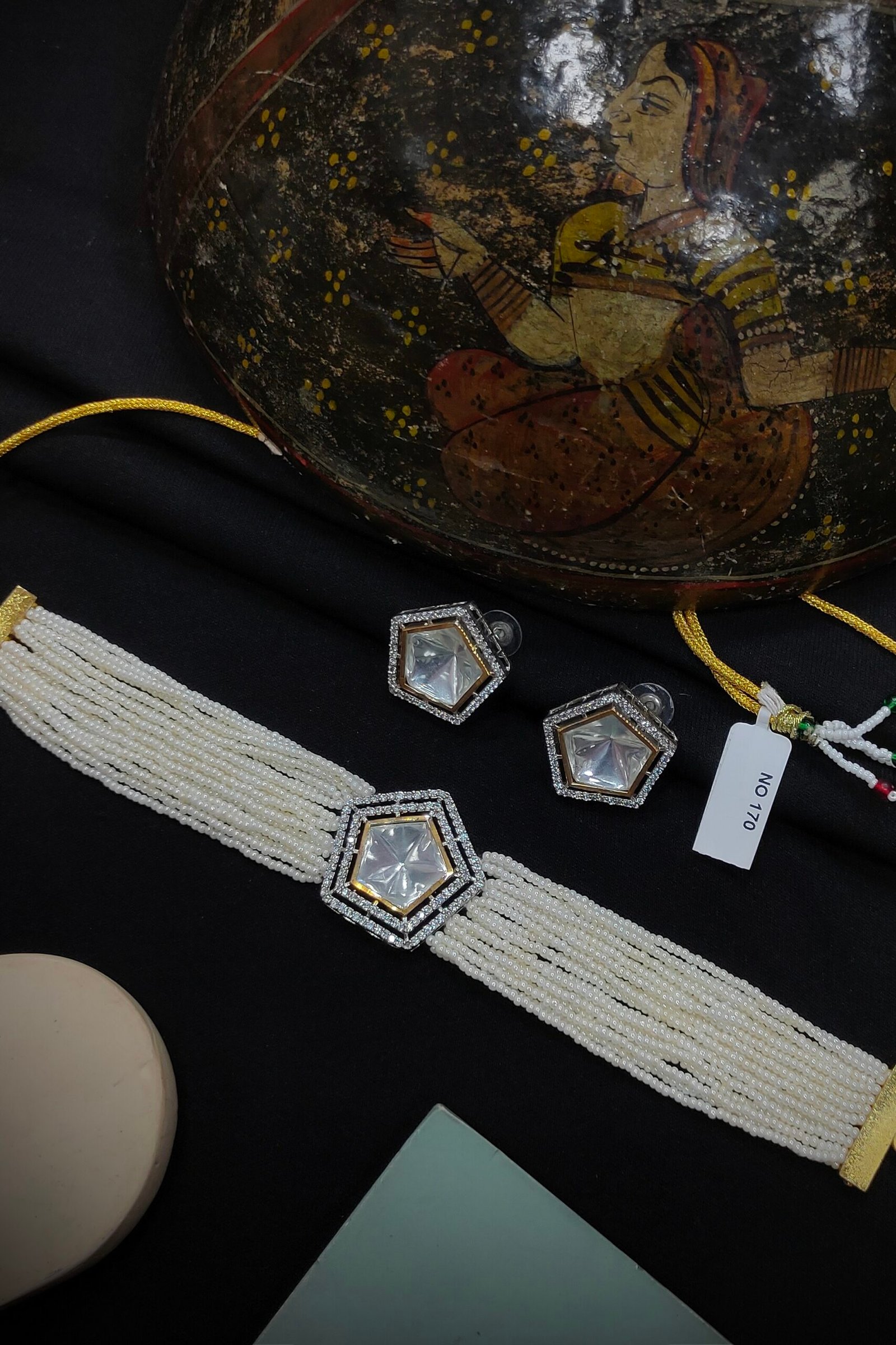 texture to the piece. These stones are set in Kundan