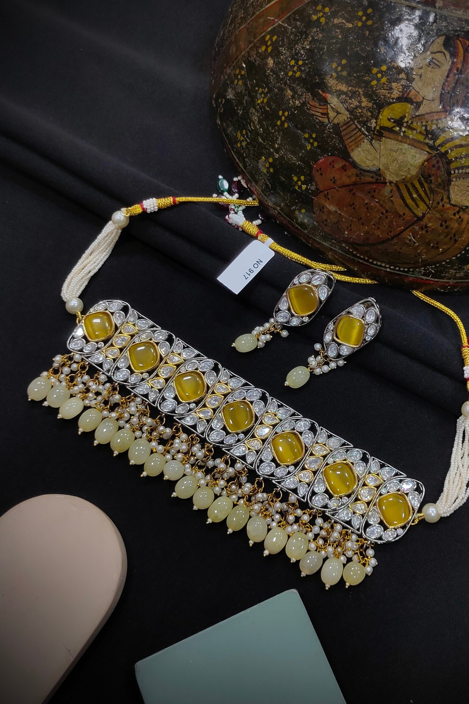 texture to the piece. These stones are set in Kundan