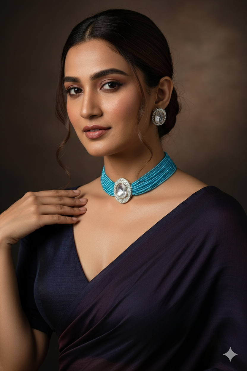 The Monzonite Kundan Set is an exquisite blend of
