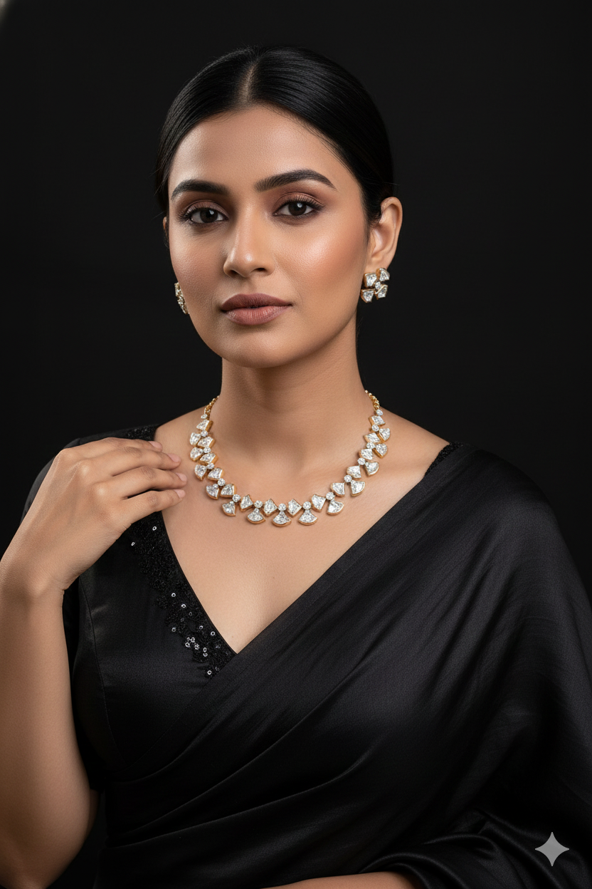 The Monzonite Kundan Set is an exquisite blend of