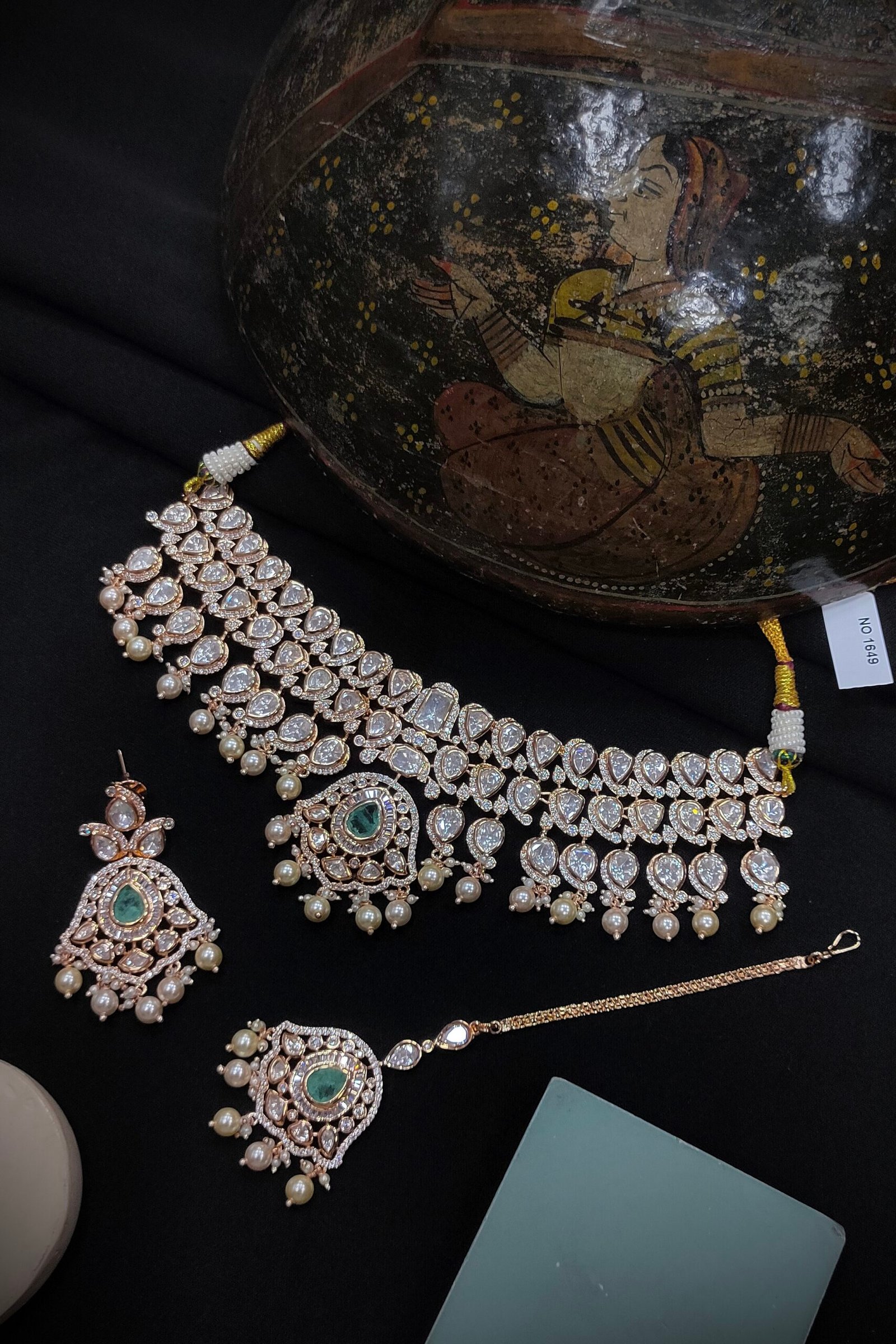 texture to the piece. These stones are set in Kundan
