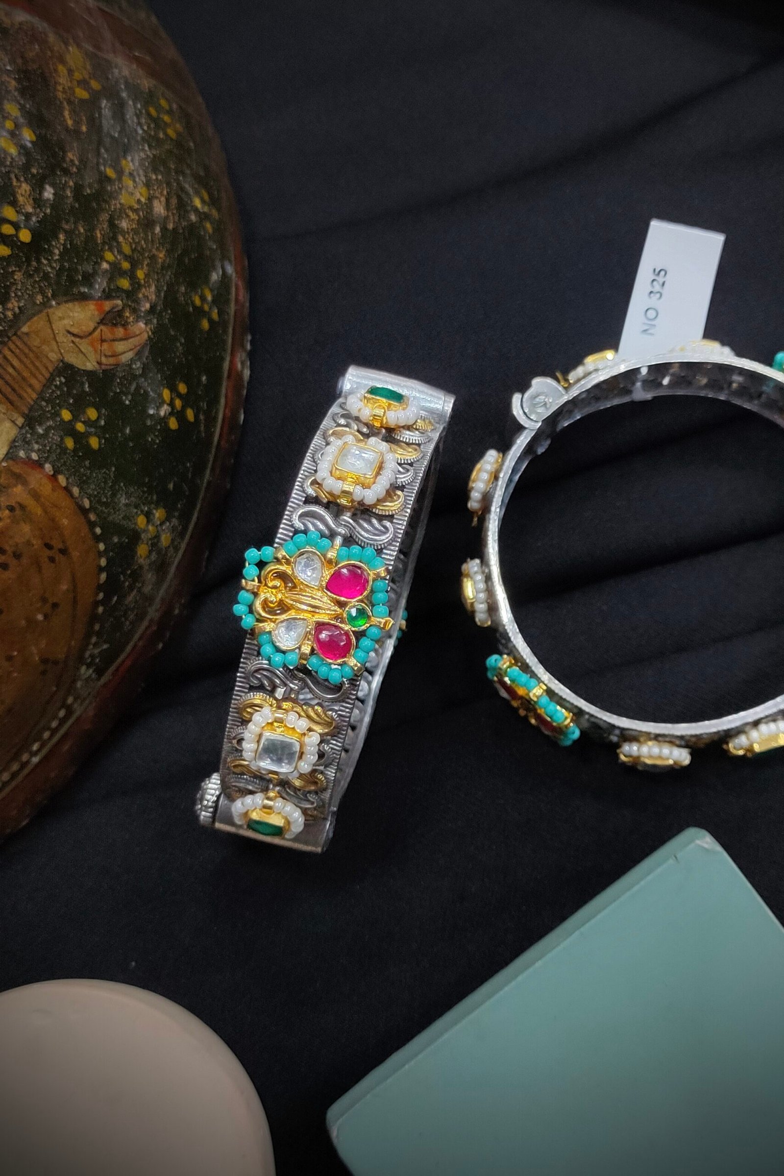Discover the allure of our Oxidized Bangles, meticulously crafted from premium Brass and German Silver for enduring quality. Adorned with intricate designs, these bangles exude traditional charm. Available in classic Silver plating, as well as the elegant Silver+Gold combination, they offer versatile styling options. Elevate your look with these timeless pieces that capture the essence of cultural elegance
