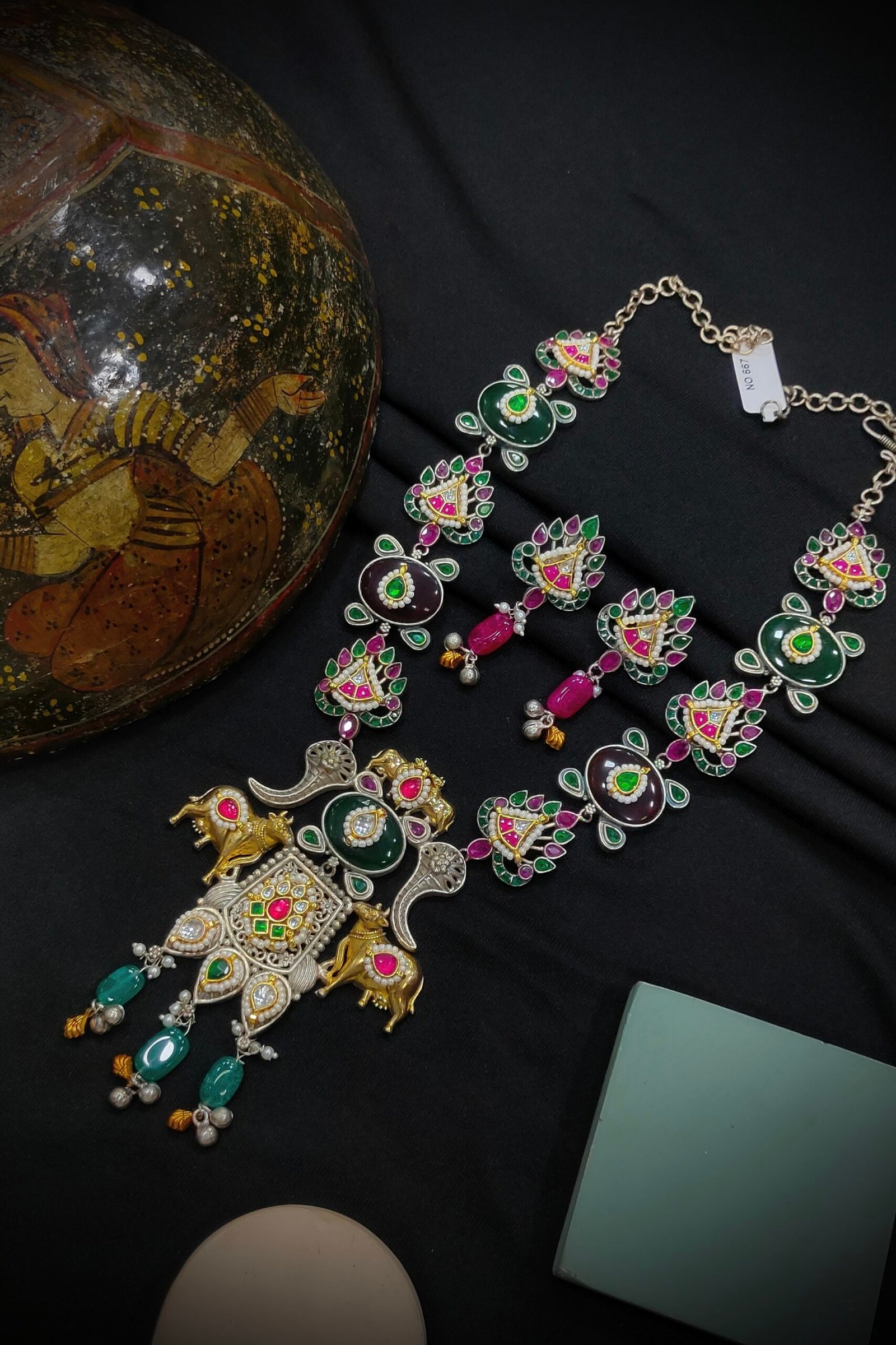Material-German Silver, Plating- Silver+Gold [Without Earrings]