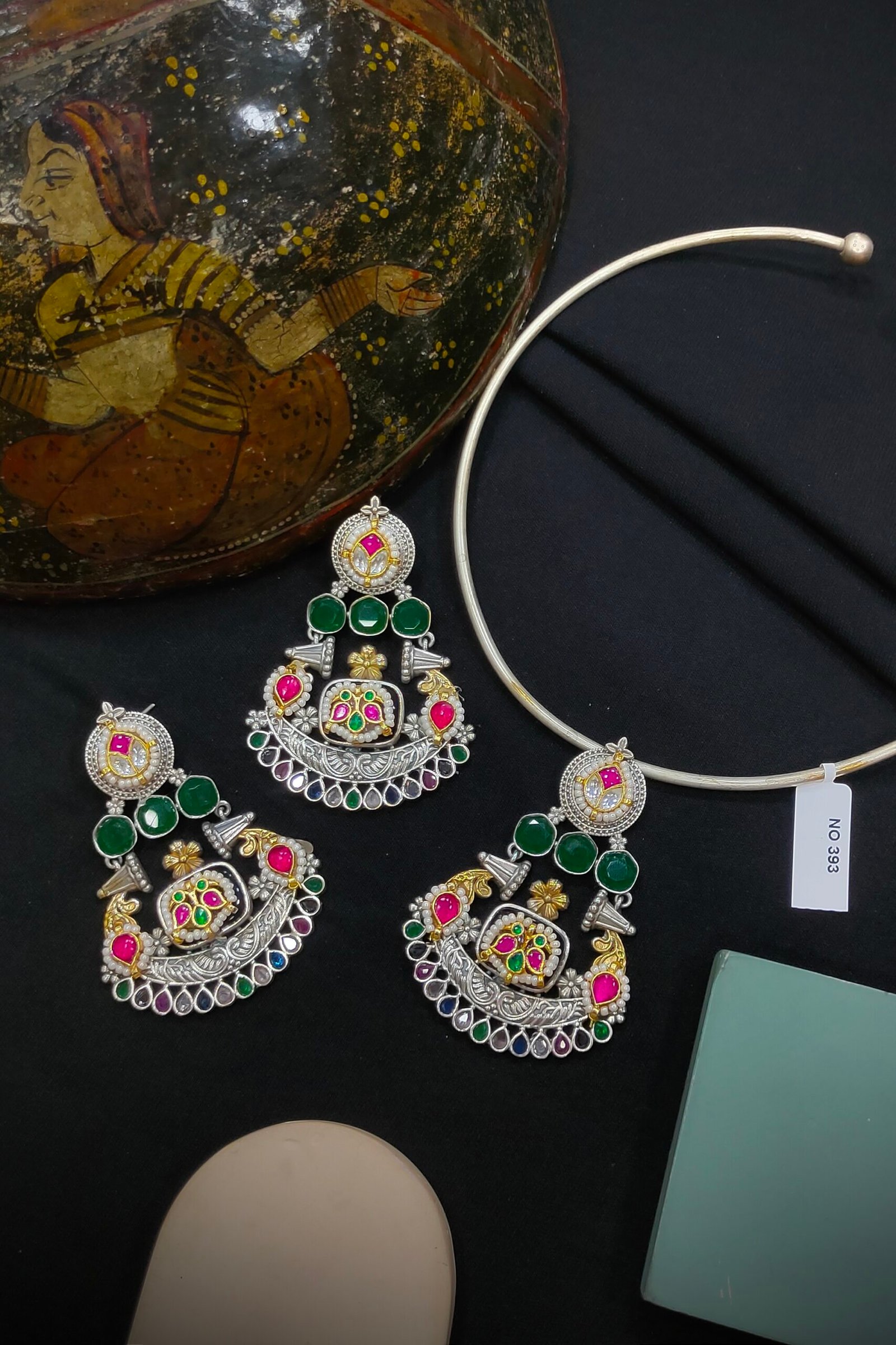 Material-German Silver, Plating- Silver+Gold [Without Earrings]