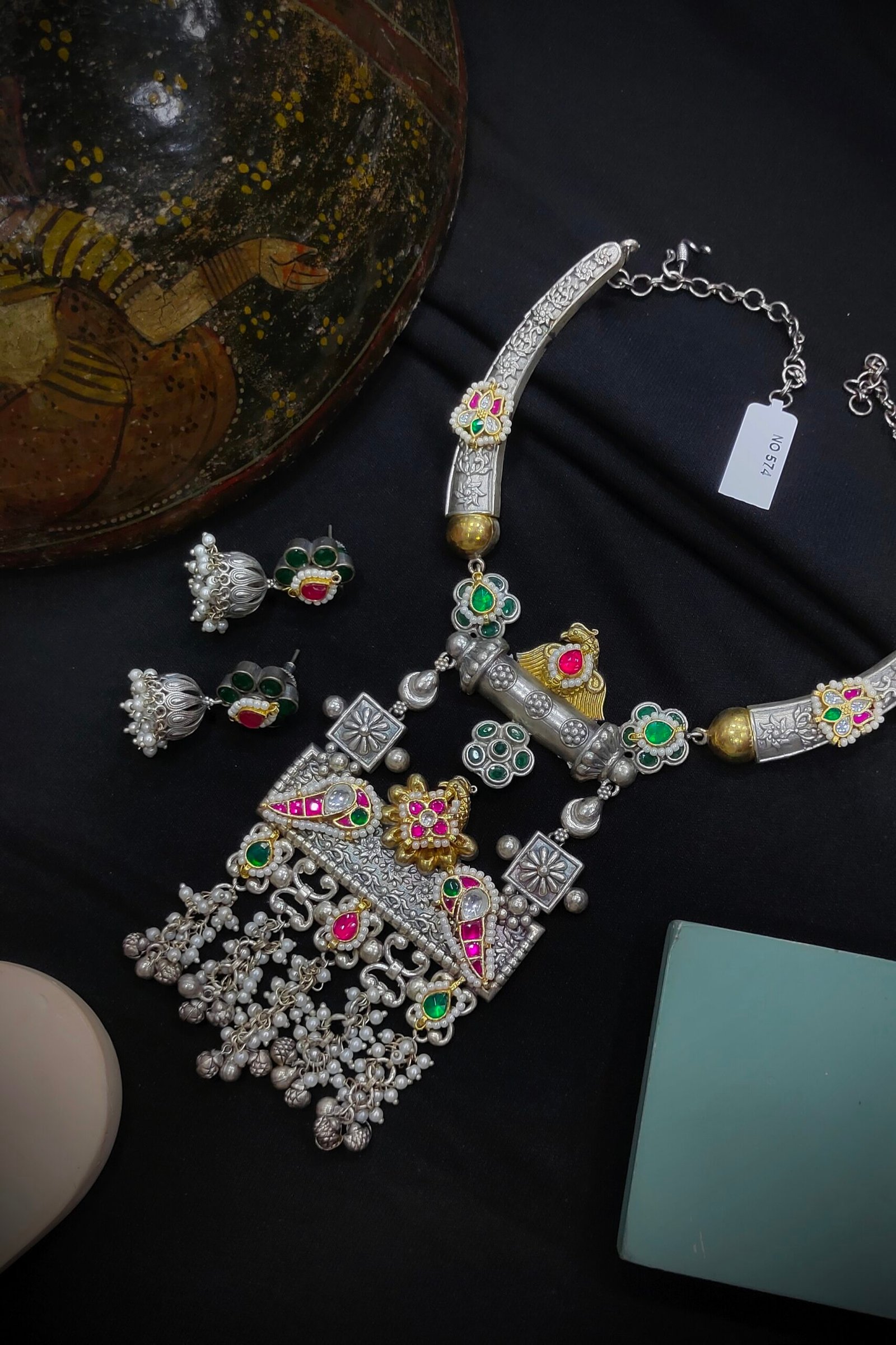 Material-German Silver, Plating- Silver+Gold [Without Earrings]