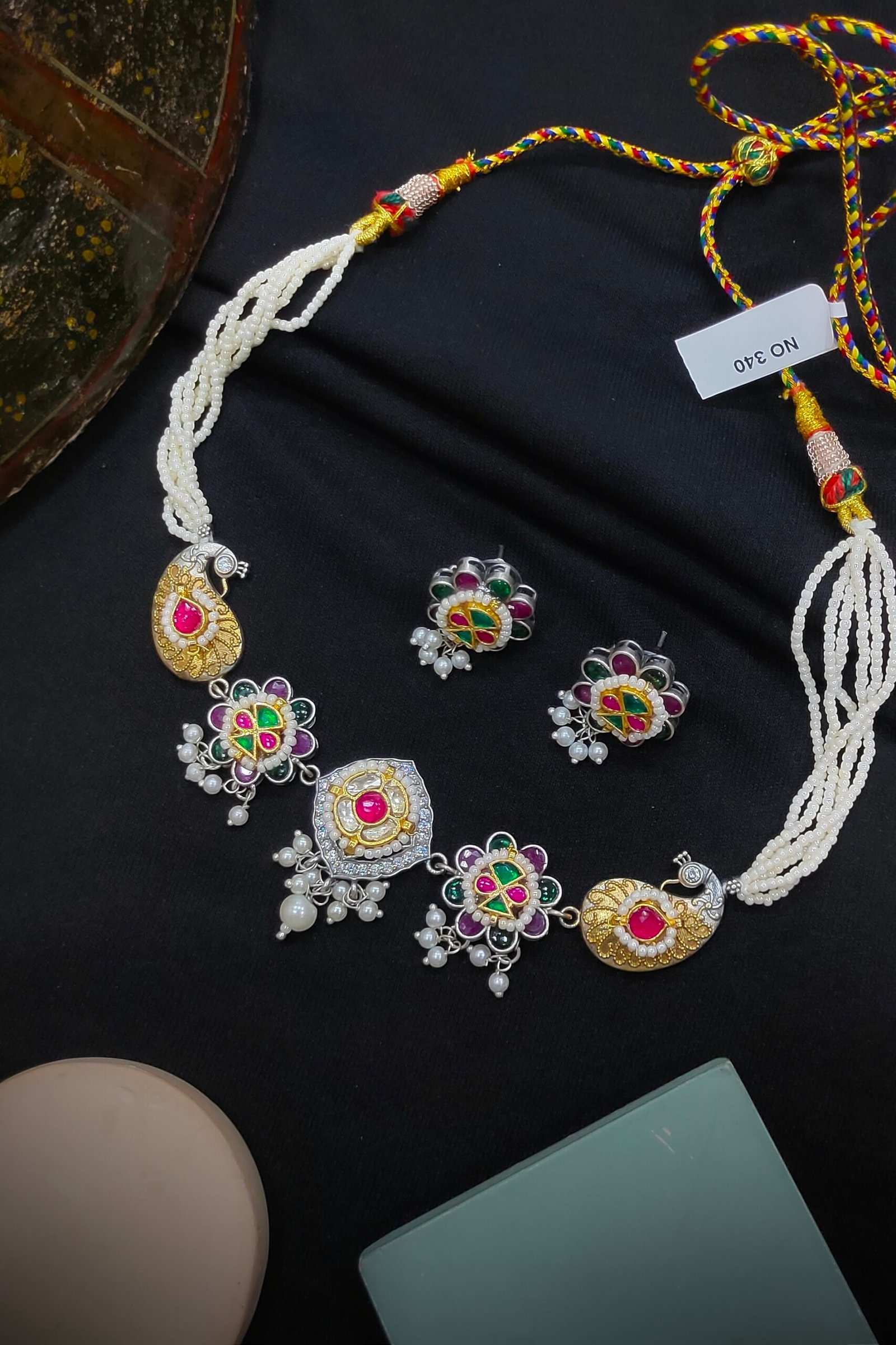 Material-German Silver, Plating- Silver+Gold [Without Earrings]
