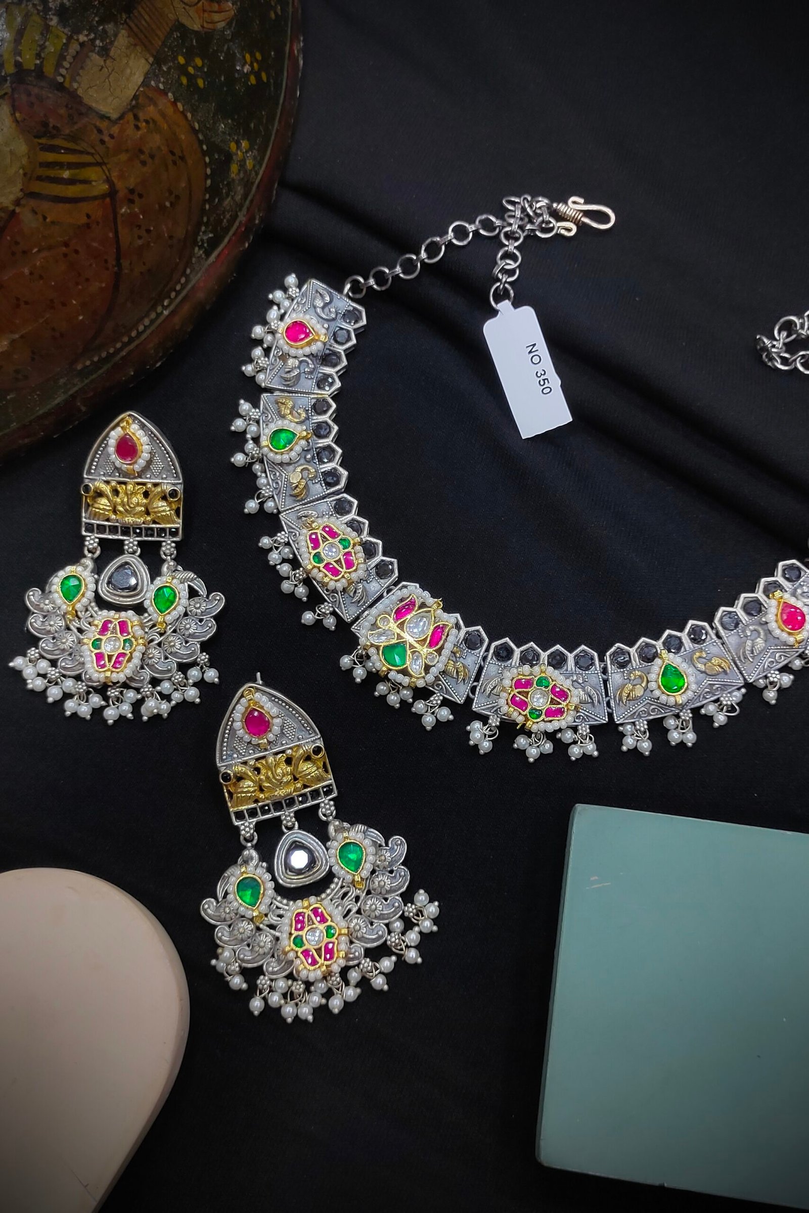Material-German Silver, Plating- Silver+Gold [Without Earrings]