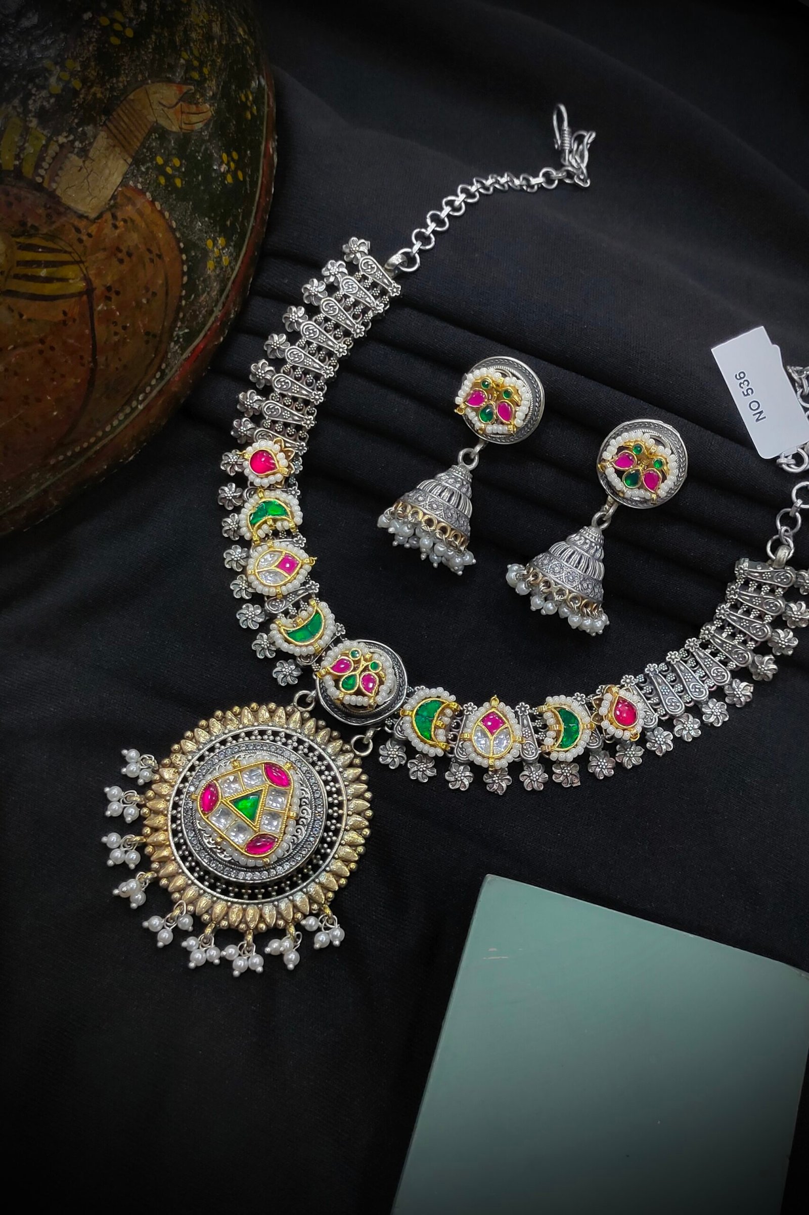 Material-German Silver, Plating- Silver+Gold [Without Earrings]