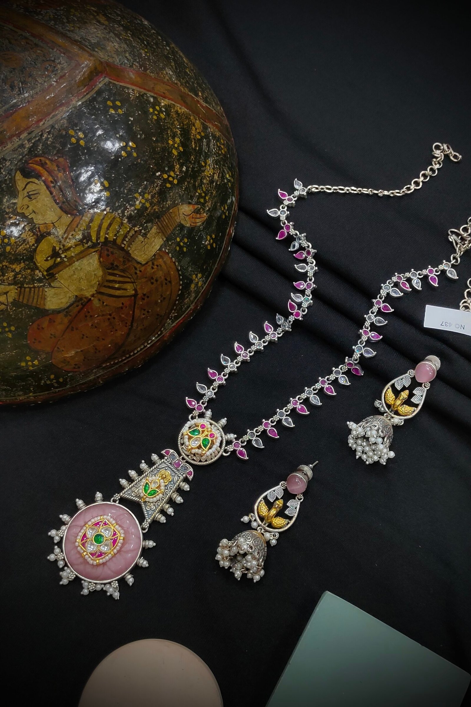 Embrace the fusion of tradition and modernity with our Oxidized Sets, meticulously crafted for refined elegance. Each set features intricate designs crafted from high-quality brass and German silver. Adorned with Silver plating or a striking Silver+Gold combination, these sets exude sophistication. Elevate your ensemble with the timeless allure of our Oxidized Sets, perfect for adding a touch of cultural flair to any occasion. Experience the intricate craftsmanship and understated beauty of these captivating sets.