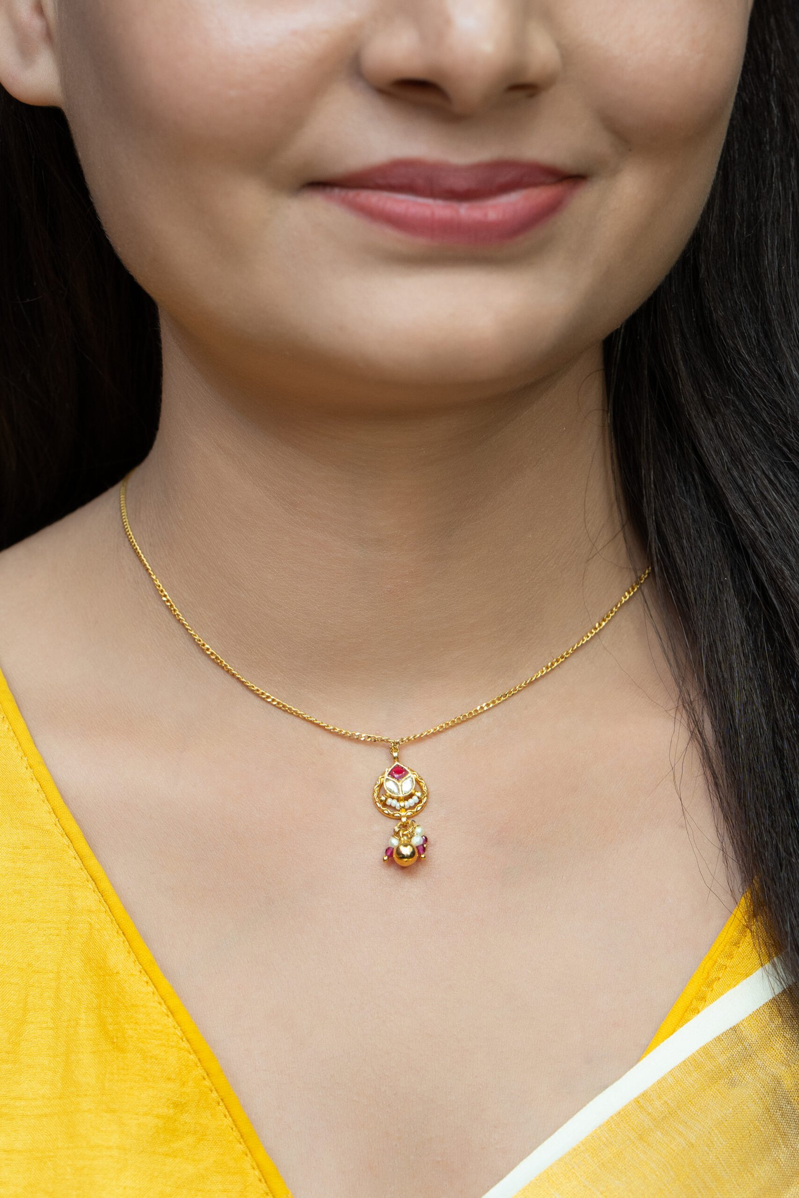 A Pachi Kundan bridal set typically features intricate designs crafted from a combination of Kundan stones and traditional Pachi work. The set usually includes a statement necklace, matching earrings, and sometimes a maang tikka or bracelet.The necklace often showcases a mix of colorful gemstones set in gold, creating a regal appearance. The earrings are designed to complement the necklace, featuring elaborate patterns and dangling elements. The overall aesthetic is rich and ornate, making it perfect for weddings and festive occasions, embodying a blend of traditional artistry and modern elegance.The craftsmanship highlights detailed floral motifs, peacock designs, or geometric patterns, reflecting cultural heritage while enhancing the bride’s beauty.