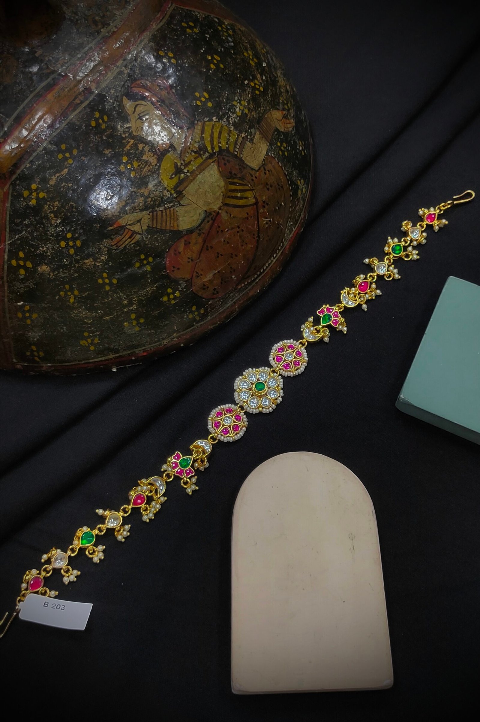 Adorn your forehead with regal elegance using our Pachi/Jadau Kundan Matha Patti, meticulously designed for timeless allure. Each piece showcases exquisite Pachi stones delicately set on brass, exuding opulence and grace. Finished with luxurious Gold plating, this Matha Patti adds a touch of sophistication to any ensemble. Experience the richness of tradition and craftsmanship with our Pachi/Jadau Kundan Matha Patti, perfect for enhancing your bridal or festive look with unparalleled beauty