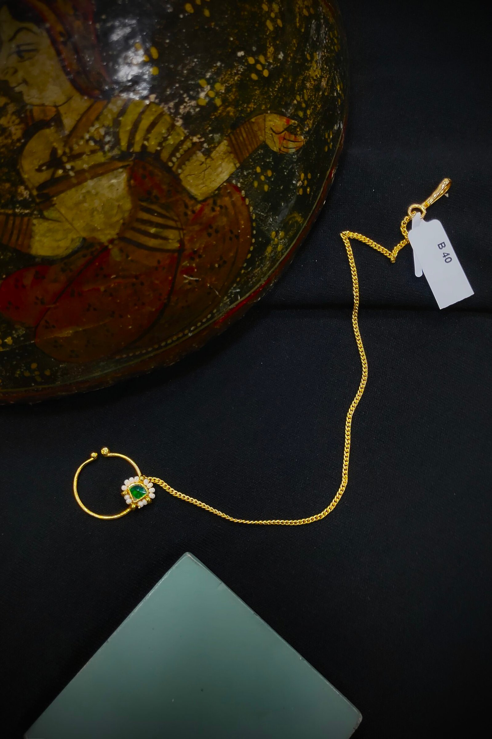 Accentuate your beauty with our exquisite Pachi/Jadau Kundan Nose Ring. Crafted with precision and adorned with stunning Kundan stones, it adds a touch of elegance to any look. Perfect for special occasions or everyday wear, this nose ring celebrates traditional craftsmanship and timeless sophistication. Elevate your style with our Pachi/Jadau Kundan Nose Ring, a symbol of grace and cultural heritage