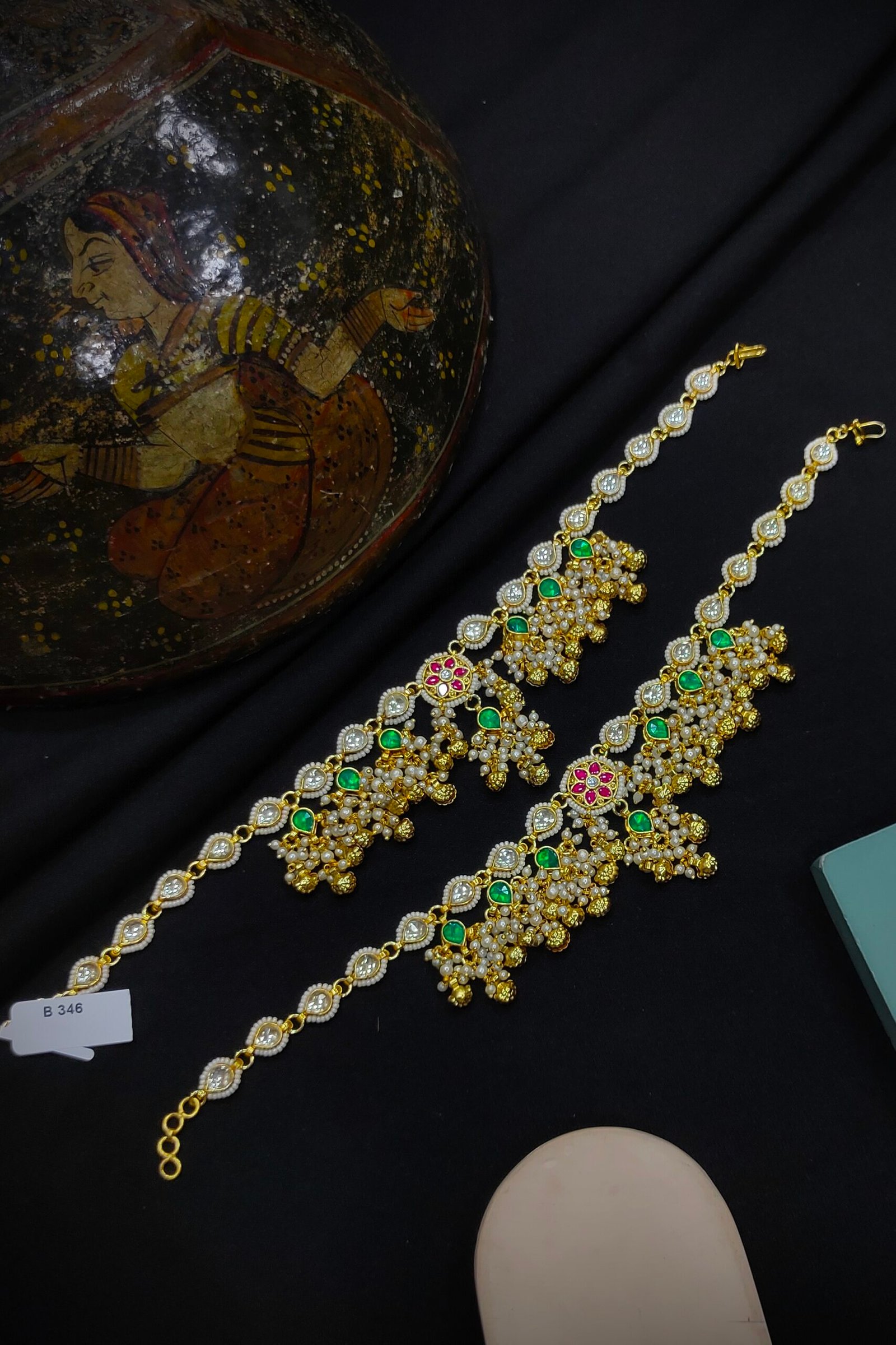 Step into traditional elegance with our Pachi/Jadau Kundan Payal, meticulously crafted from brass and adorned with authentic Pachi stones. Finished with luxurious Gold plating, this Payal exudes timeless charm and opulence. Elevate your ensemble with the regal allure of our Pachi/Jadau Kundan Payal, perfect for adding a touch of sophistication to your feet. Experience the exquisite craftsmanship and majestic beauty of this captivating accessory.