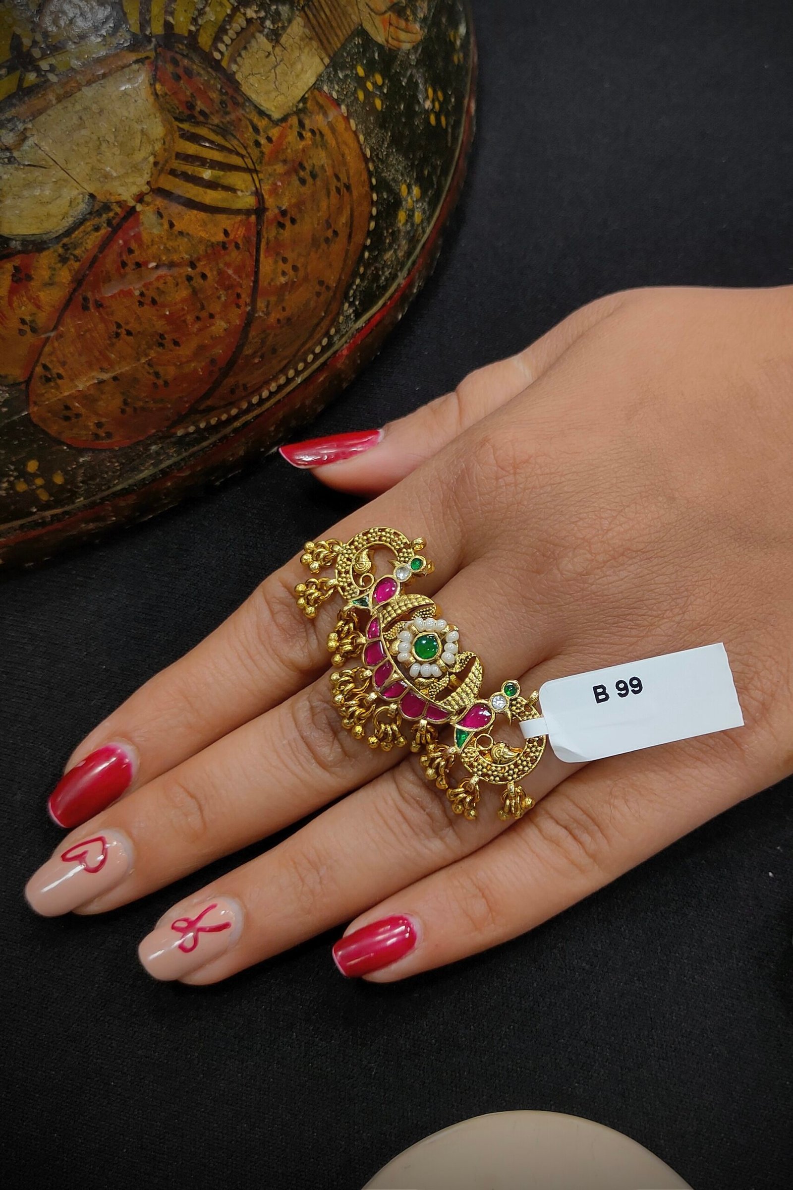 Stone- Pachi Kundan, Material-Brass and Copper, Plating-Gold[Adjustable]