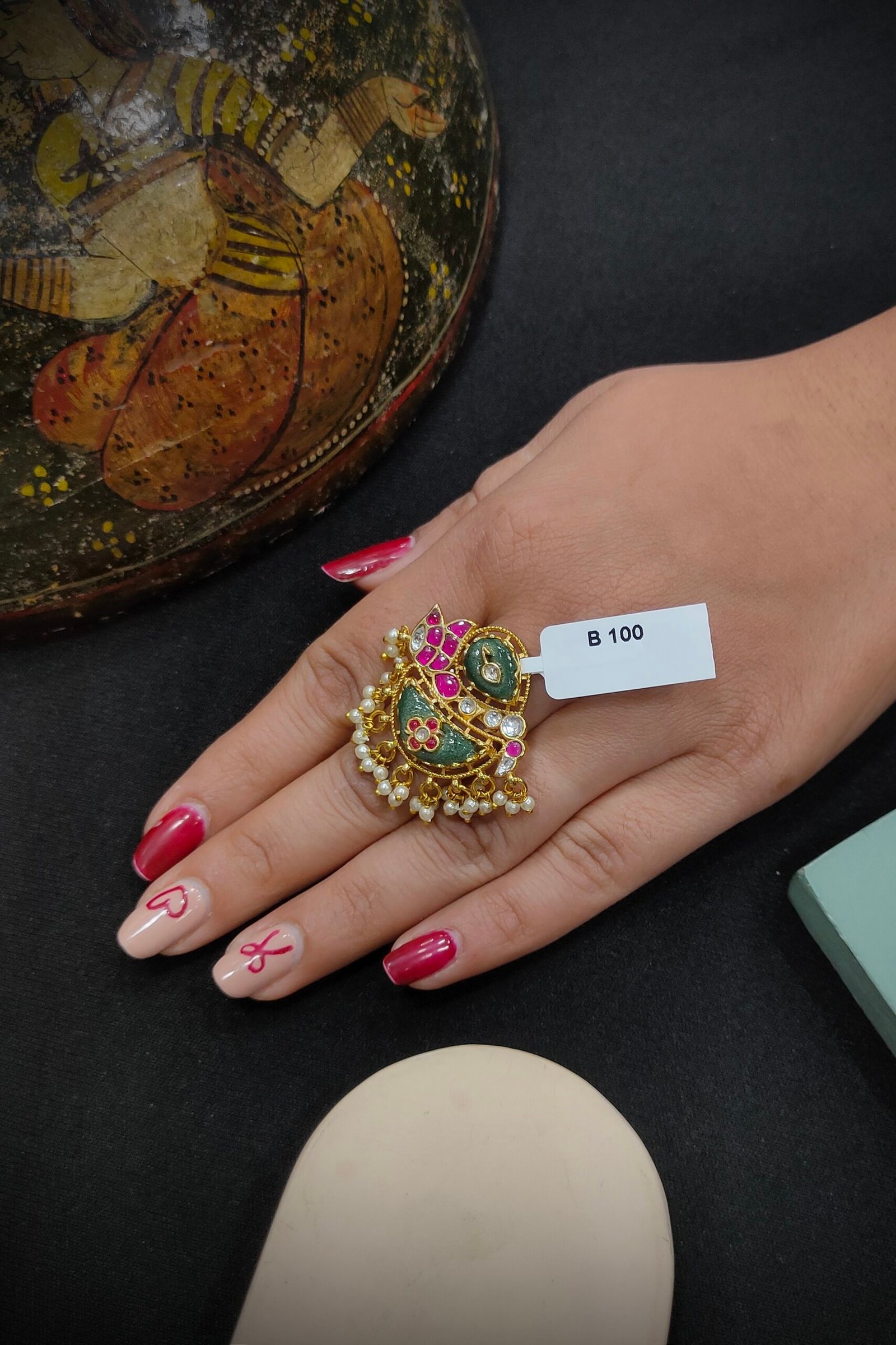 Step into elegance with our Pachi Kundan Rings Collection, featuring stunning Pachi stones that radiate traditional charm. Each ring is crafted from high-quality brass and beautifully plated in luxurious gold, ensuring both durability and a regal finish.Step into elegance with our Pachi Kundan Rings Collection, featuring stunning Pachi stones that radiate traditional charm. Each ring is crafted from high-quality brass and beautifully plated in luxurious gold, ensuring both durability and a regal finish.