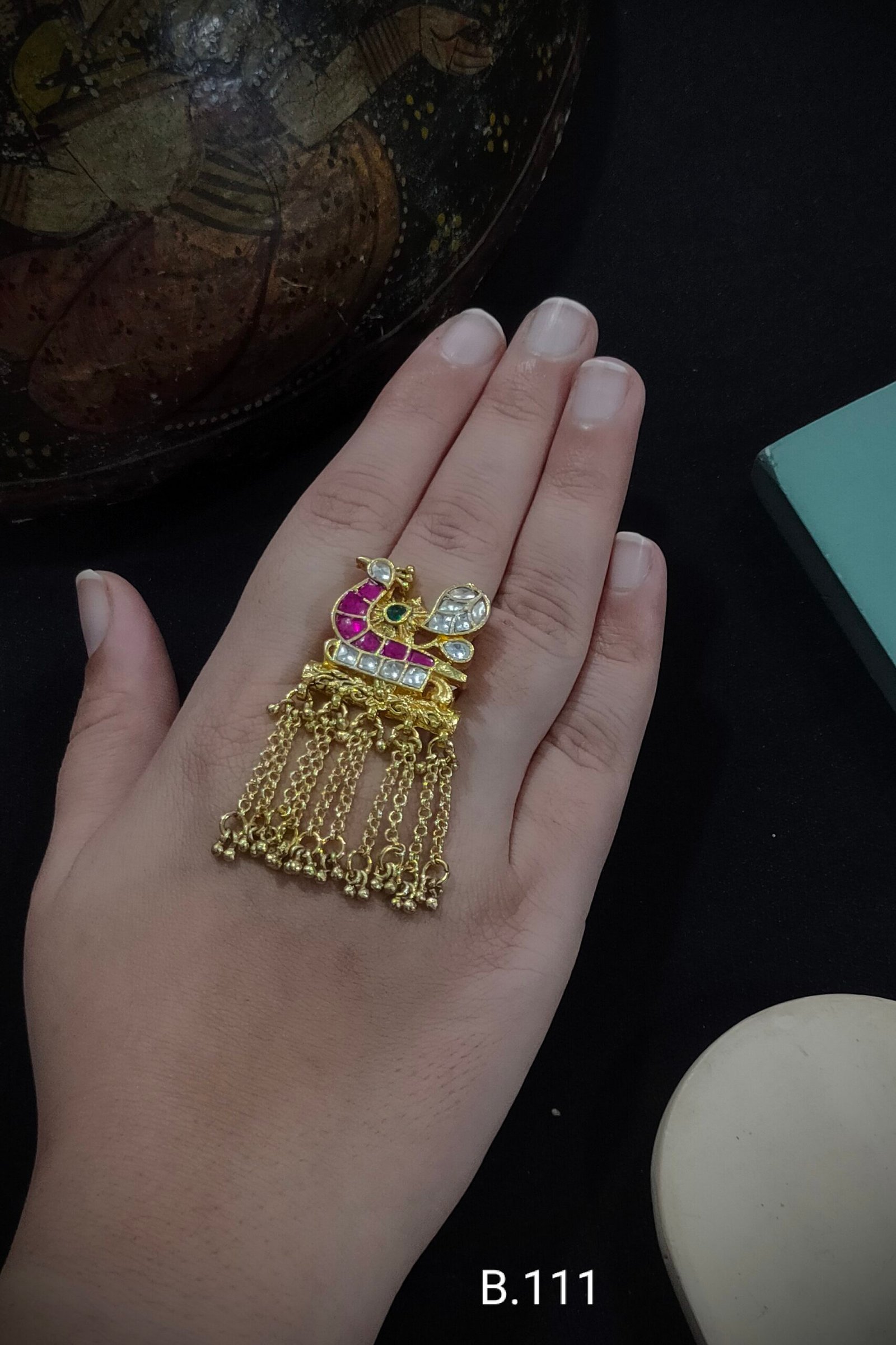 Stone- Pachi Kundan, Material-Brass and Copper, Plating-Gold[Adjustable]