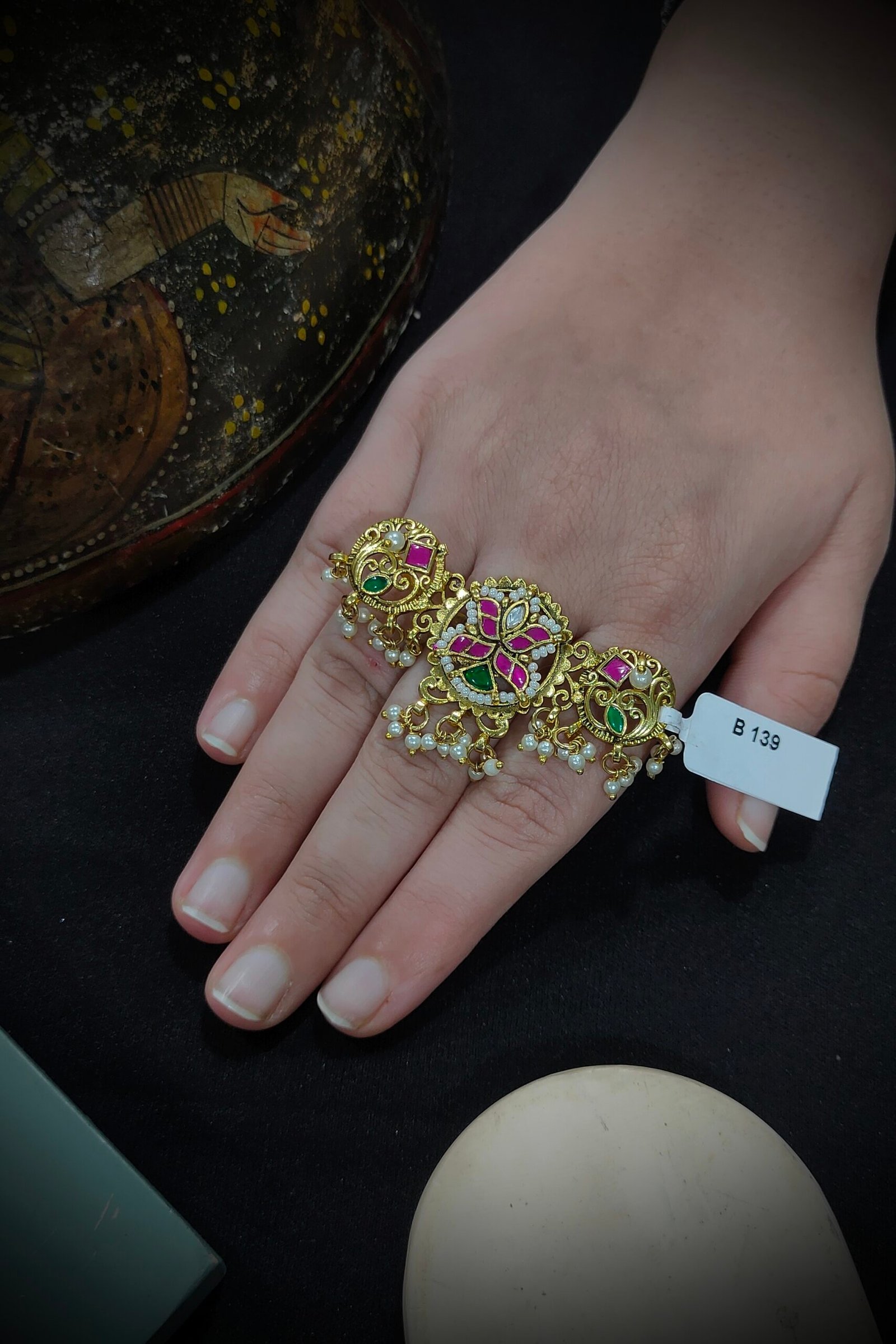 Stone- Pachi Kundan, Material-Brass and Copper, Plating-Gold[Adjustable]