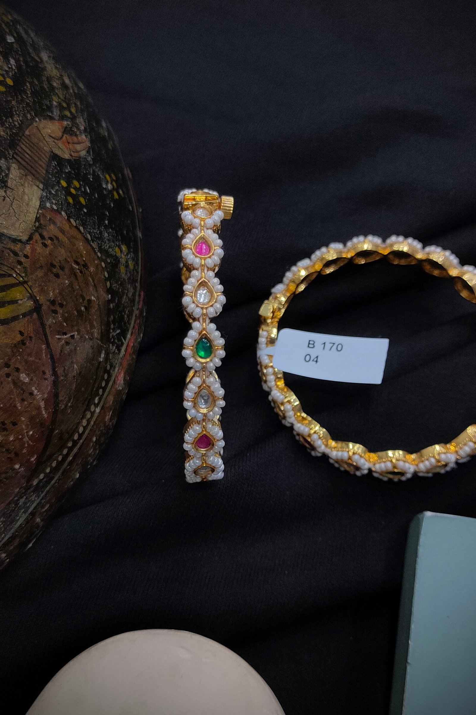 Elevate your traditional look with our handcrafted Pachi Kundan (Jadau) Bangles.