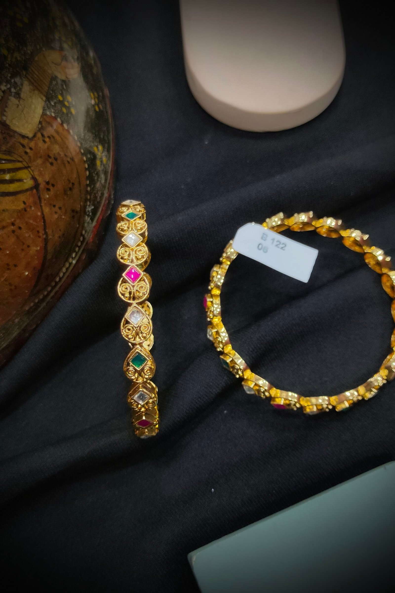 Elevate your traditional look with our handcrafted Pachi Kundan (Jadau) Bangles.
