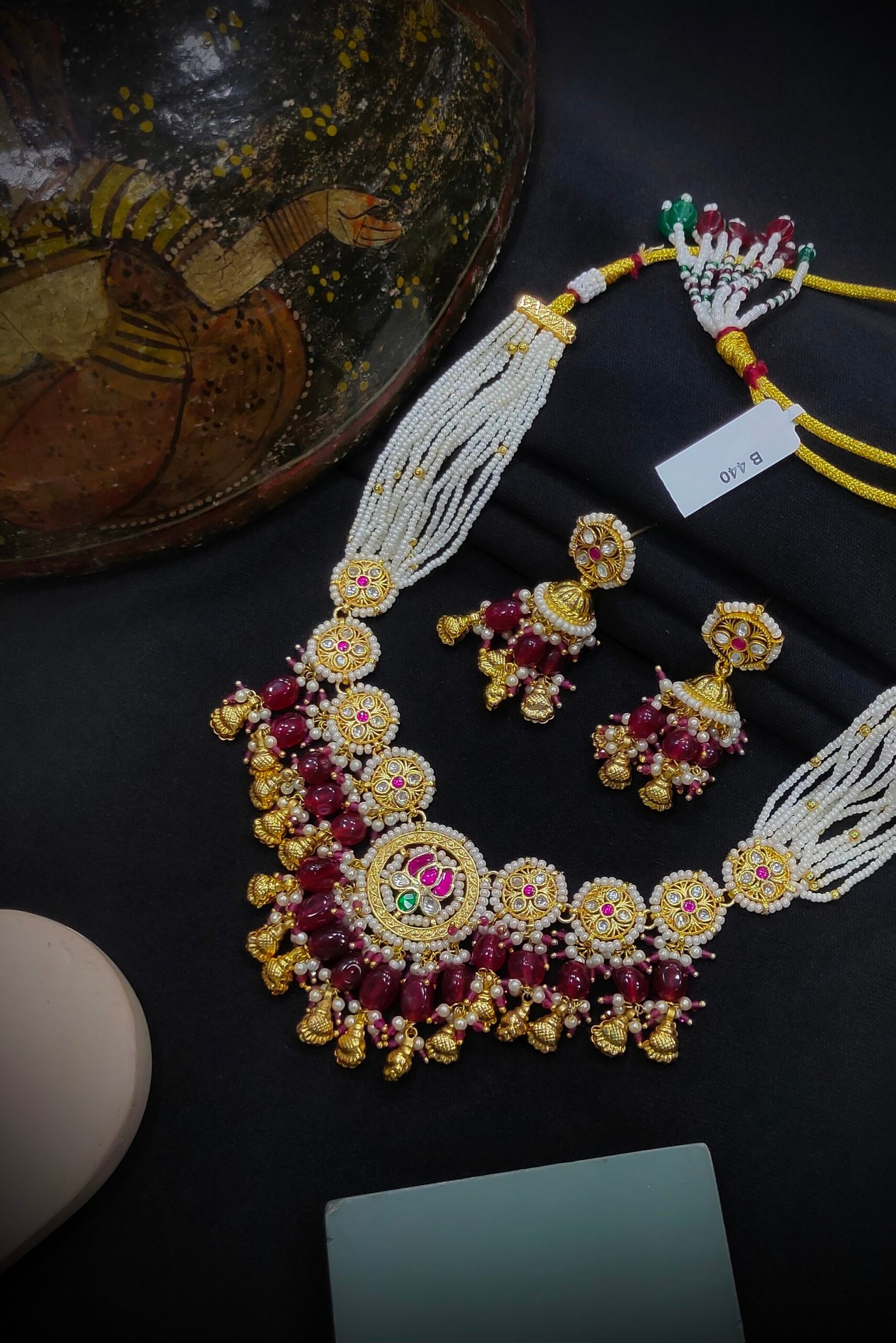 Make a statement of timeless elegance with our Pachi Kundan Choker & Necklace Set, a luxurious blend of traditional craftsmanship and regal charm. This set features a beautifully handcrafted choker for a bold, elegant neckline and a matching long necklace for layered grandeur – both adorned with authentic Pachi Kundan stones and detailed meenakari/enamel work.