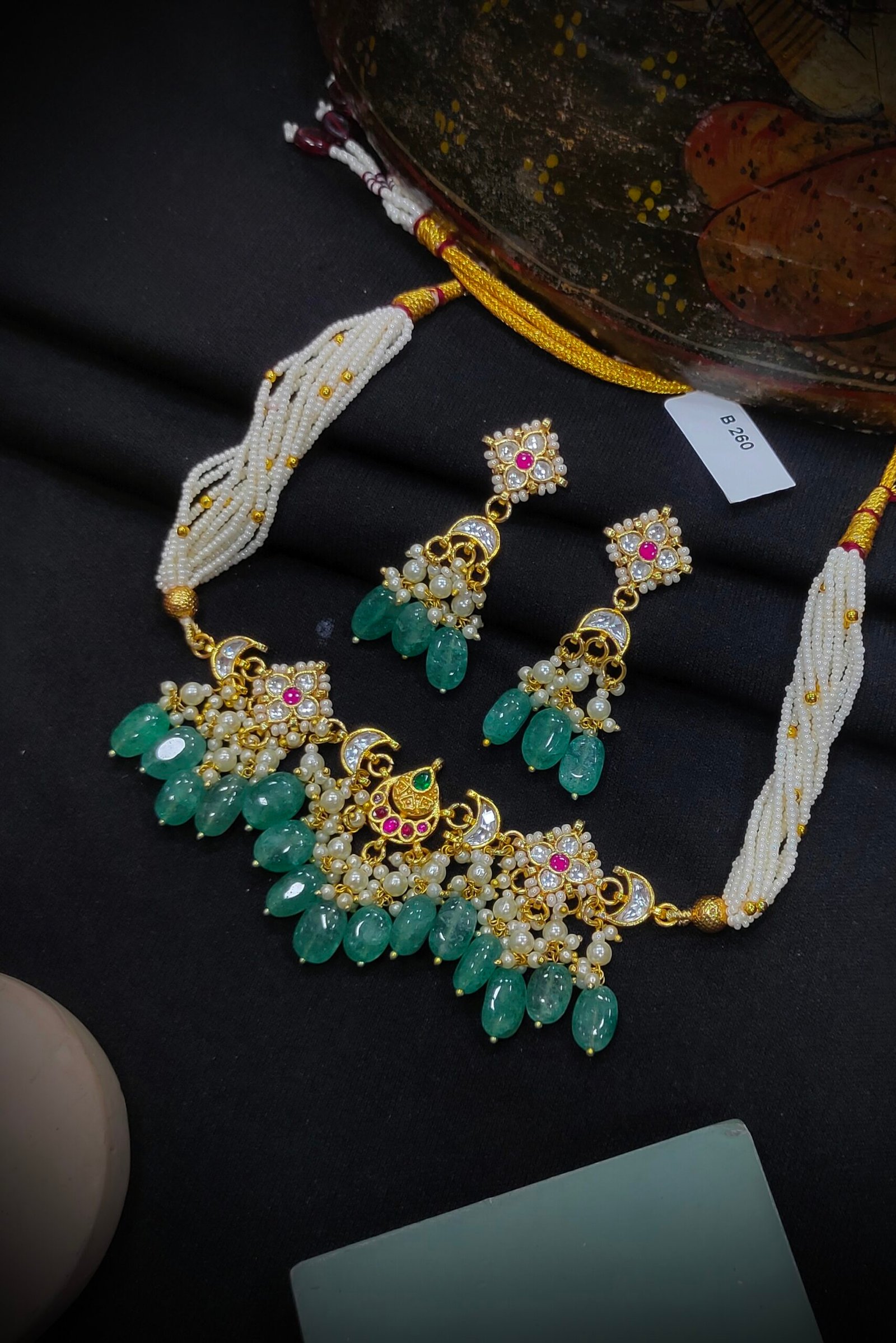 Make a statement of timeless elegance with our Pachi Kundan Choker & Necklace Set, a luxurious blend of traditional craftsmanship and regal charm. This set features a beautifully handcrafted choker for a bold, elegant neckline and a matching long necklace for layered grandeur – both adorned with authentic Pachi Kundan stones and detailed meenakari/enamel work.