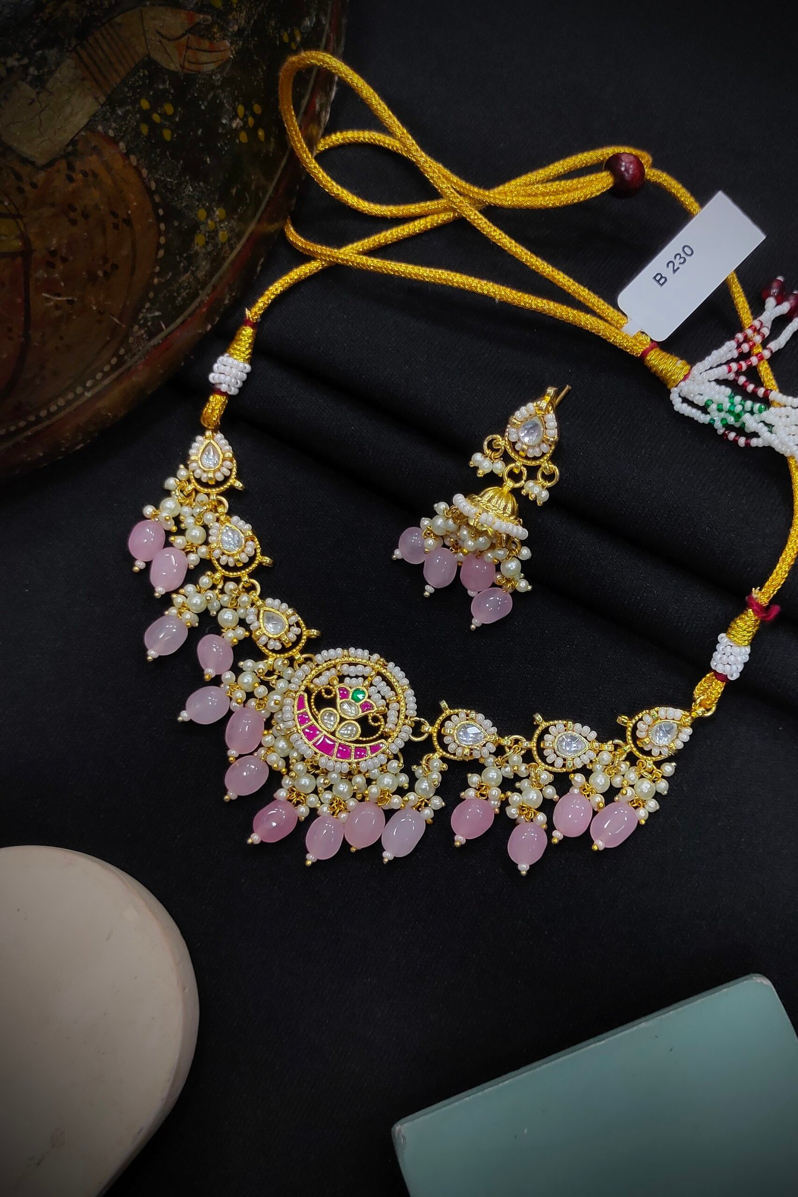 Make a statement of timeless elegance with our Pachi Kundan Choker & Necklace Set, a luxurious blend of traditional craftsmanship and regal charm. This set features a beautifully handcrafted choker for a bold, elegant neckline and a matching long necklace for layered grandeur – both adorned with authentic Pachi Kundan stones and detailed meenakari/enamel work.
