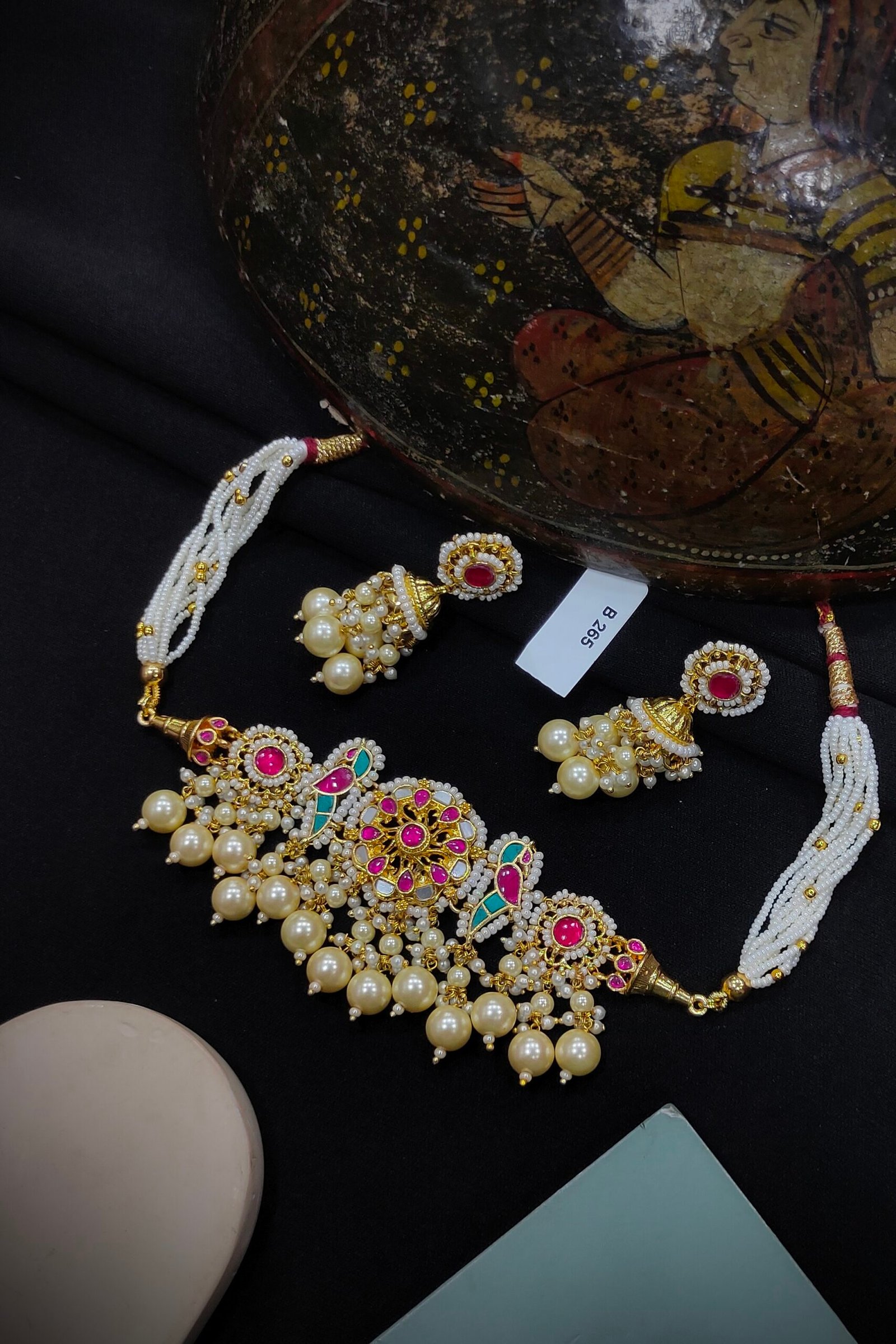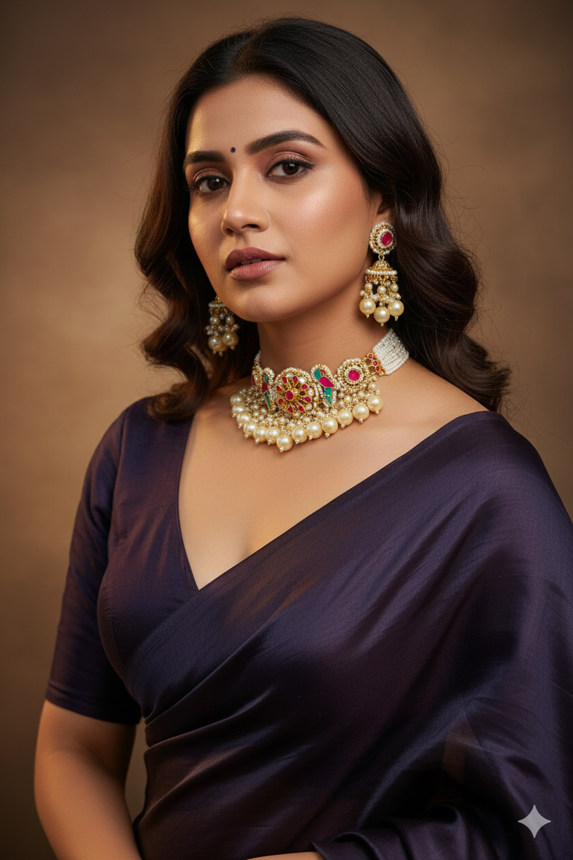 Make a statement of timeless elegance with our Pachi Kundan Choker & Necklace Set, a luxurious blend of traditional craftsmanship and regal charm. This set features a beautifully handcrafted choker for a bold, elegant neckline and a matching long necklace for layered grandeur – both adorned with authentic Pachi Kundan stones and detailed meenakari/enamel work.