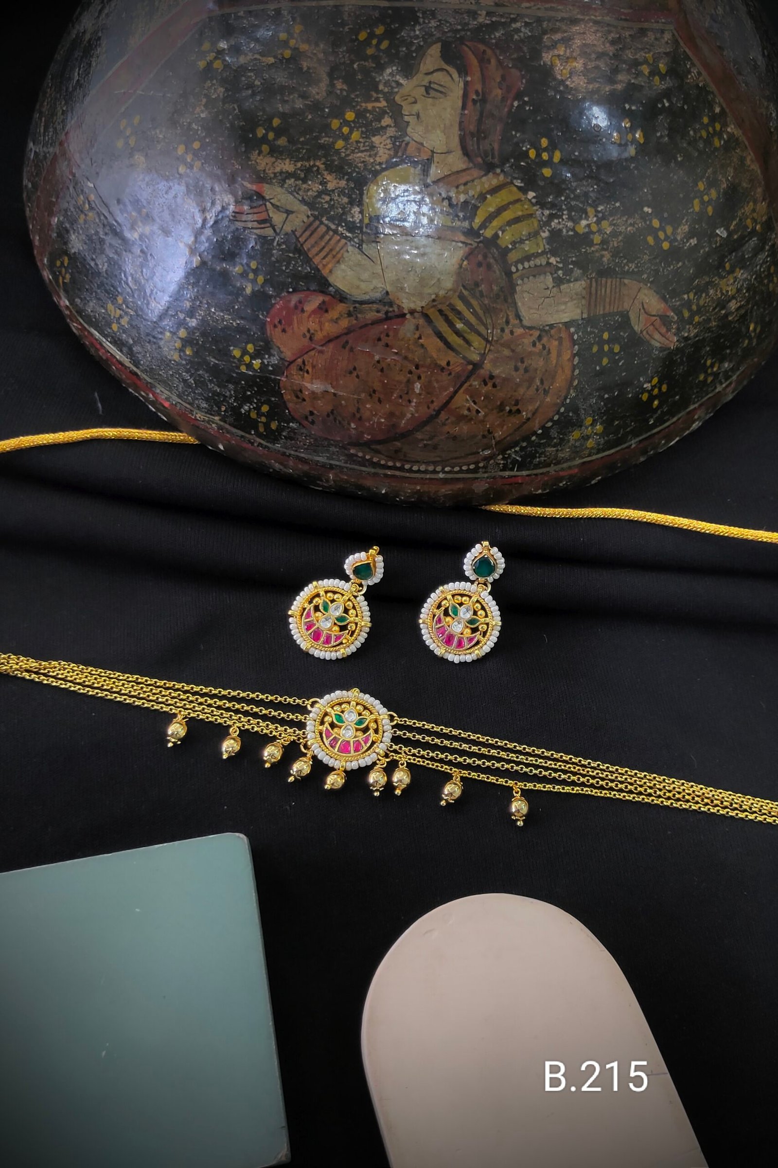 Make a statement of timeless elegance with our Pachi Kundan Choker & Necklace Set, a luxurious blend of traditional craftsmanship and regal charm. This set features a beautifully handcrafted choker for a bold, elegant neckline and a matching long necklace for layered grandeur – both adorned with authentic Pachi Kundan stones and detailed meenakari/enamel work.