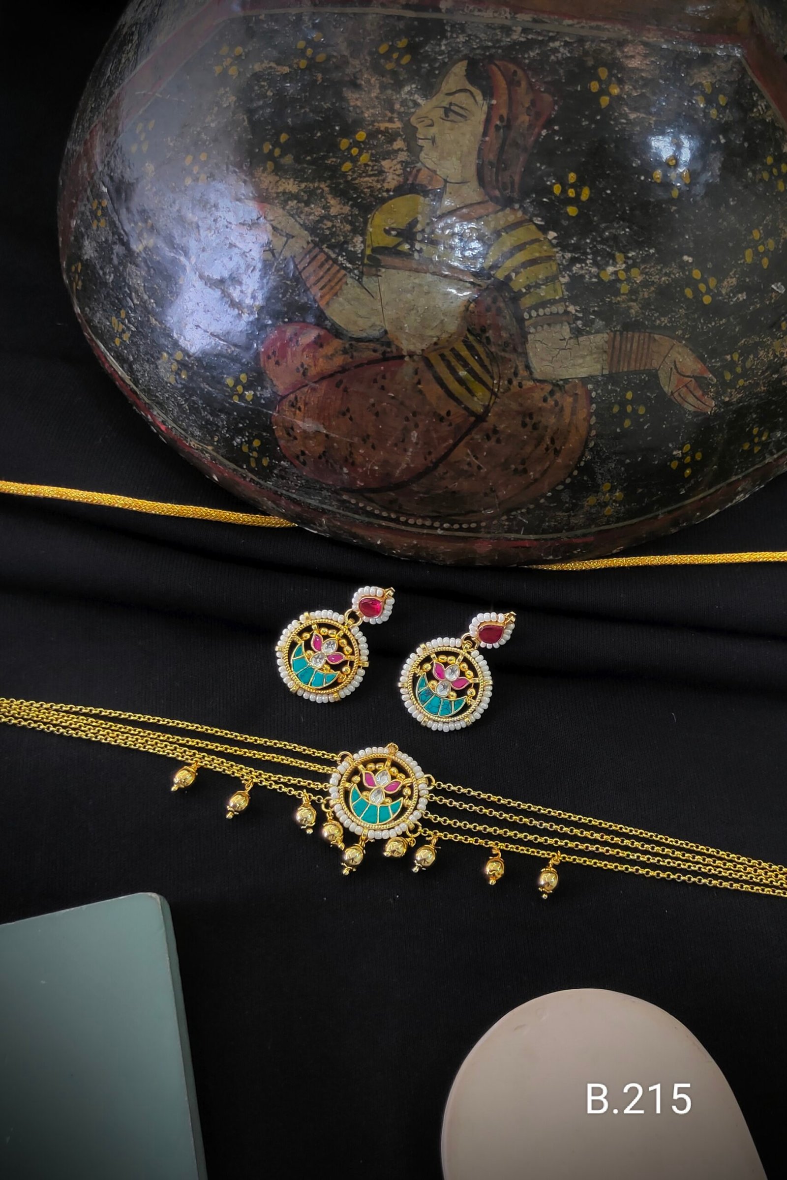 Make a statement of timeless elegance with our Pachi Kundan Choker & Necklace Set, a luxurious blend of traditional craftsmanship and regal charm. This set features a beautifully handcrafted choker for a bold, elegant neckline and a matching long necklace for layered grandeur – both adorned with authentic Pachi Kundan stones and detailed meenakari/enamel work.