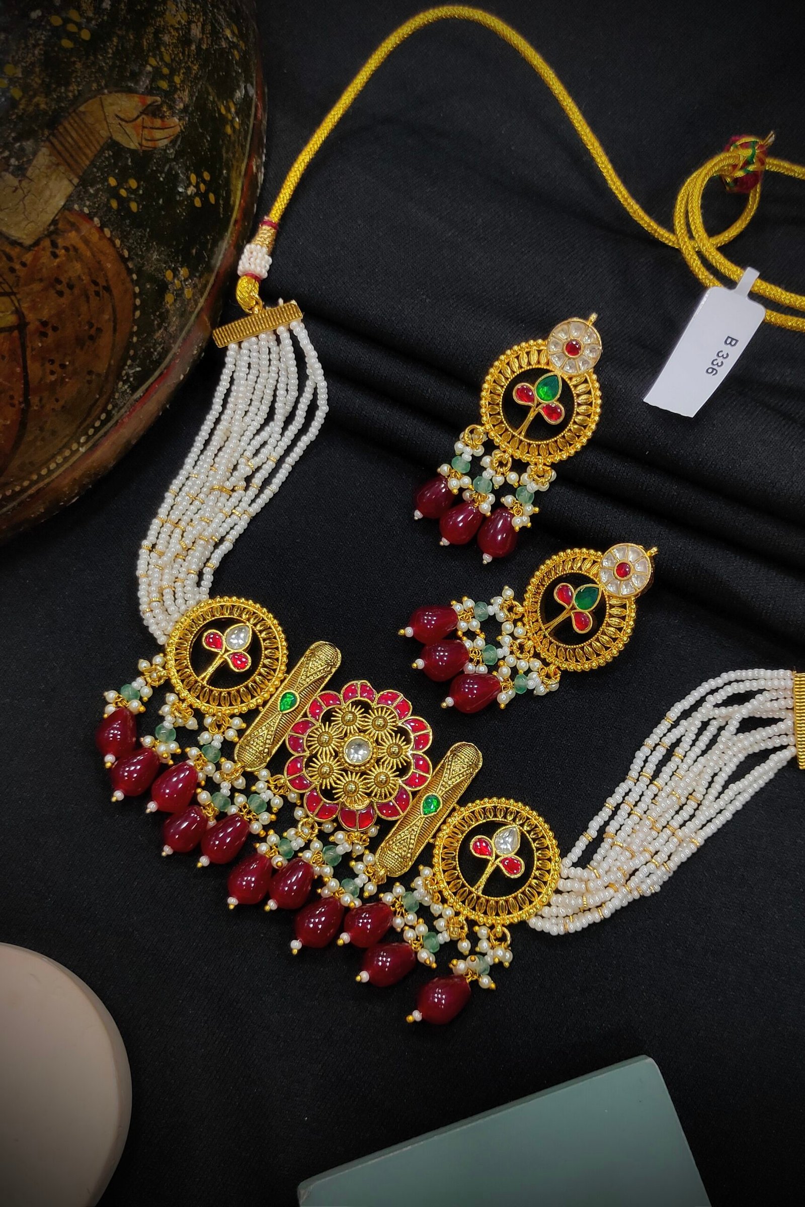 Make a statement of timeless elegance with our Pachi Kundan Choker & Necklace Set, a luxurious blend of traditional craftsmanship and regal charm. This set features a beautifully handcrafted choker for a bold, elegant neckline and a matching long necklace for layered grandeur – both adorned with authentic Pachi Kundan stones and detailed meenakari/enamel work.