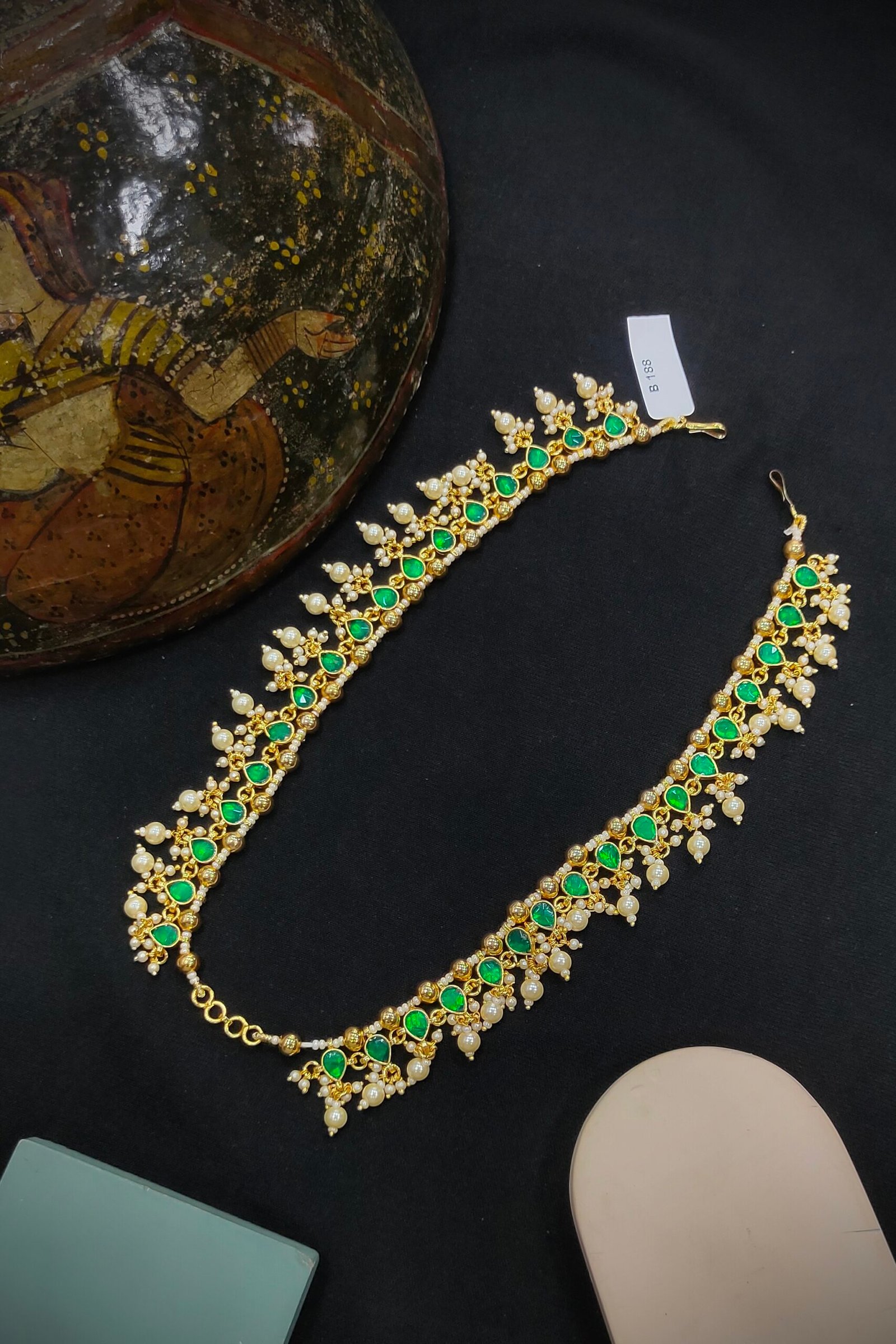 Elevate your style with our Pachi Kundan/Jadau Damni, meticulously crafted from durable Brass and adorned with exquisite Pachi stones. Embraced with luxurious Gold plating, this accessory exudes timeless elegance and sophistication. Perfect for adding a touch of regal charm to any ensemble, our Pachi Kundan/Jadau Damni captures the essence of traditional opulence.