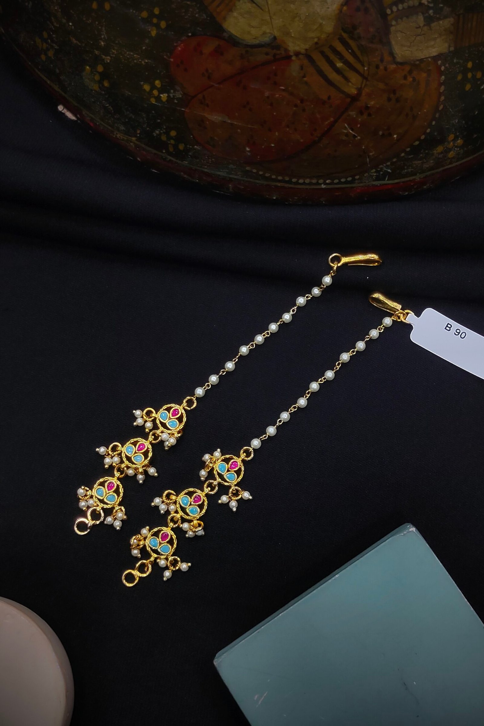 Elegant Pachi Kundan Jadau earchains beautifully handcrafted with traditional artistry. These exquisite earrings feature rich kundan stones, intricate jadau detailing, and delicate chains that add a royal charm. Perfect for bridal and festive looks, they combine heritage design with timeless elegance.