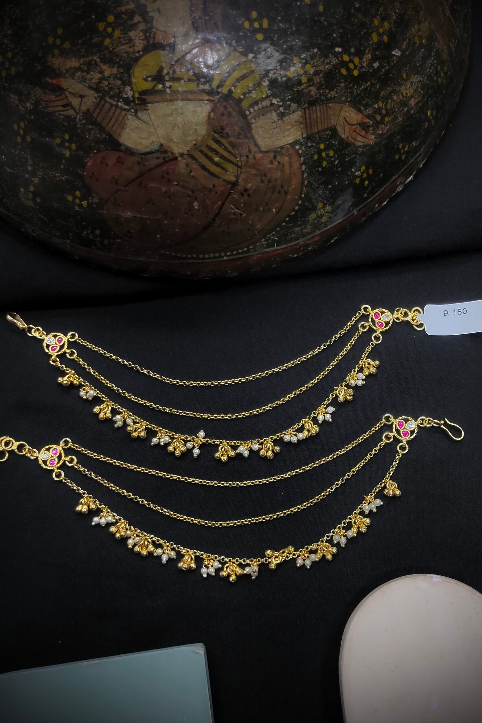 Elegant Pachi Kundan Jadau earchains beautifully handcrafted with traditional artistry. These exquisite earrings feature rich kundan stones, intricate jadau detailing, and delicate chains that add a royal charm. Perfect for bridal and festive looks, they combine heritage design with timeless elegance.