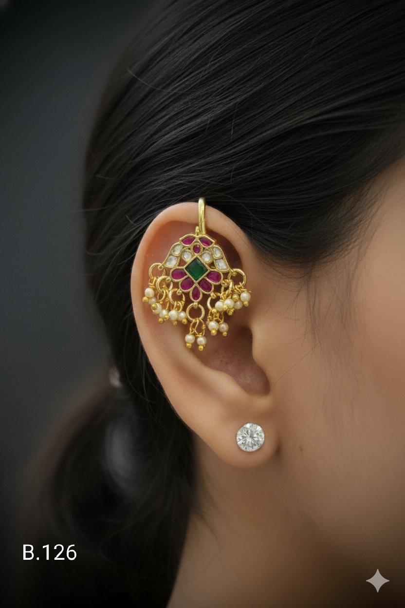 Embrace the opulence of our Pachi Kundan/Jadau Earrings, a fusion of tradition and luxury. Each earring showcases exquisite Pachi stones set delicately upon brass, radiating timeless allure. Finished with lustrous Gold plating, these earrings exude regal elegance. Elevate your ensemble with the enchanting beauty of our Pachi Kundan/Jadau Earrings, perfect for adding a touch of sophistication to any occasion. Experience the richness of Indian craftsmanship and indulge in the exquisite charm of these captivating pieces.