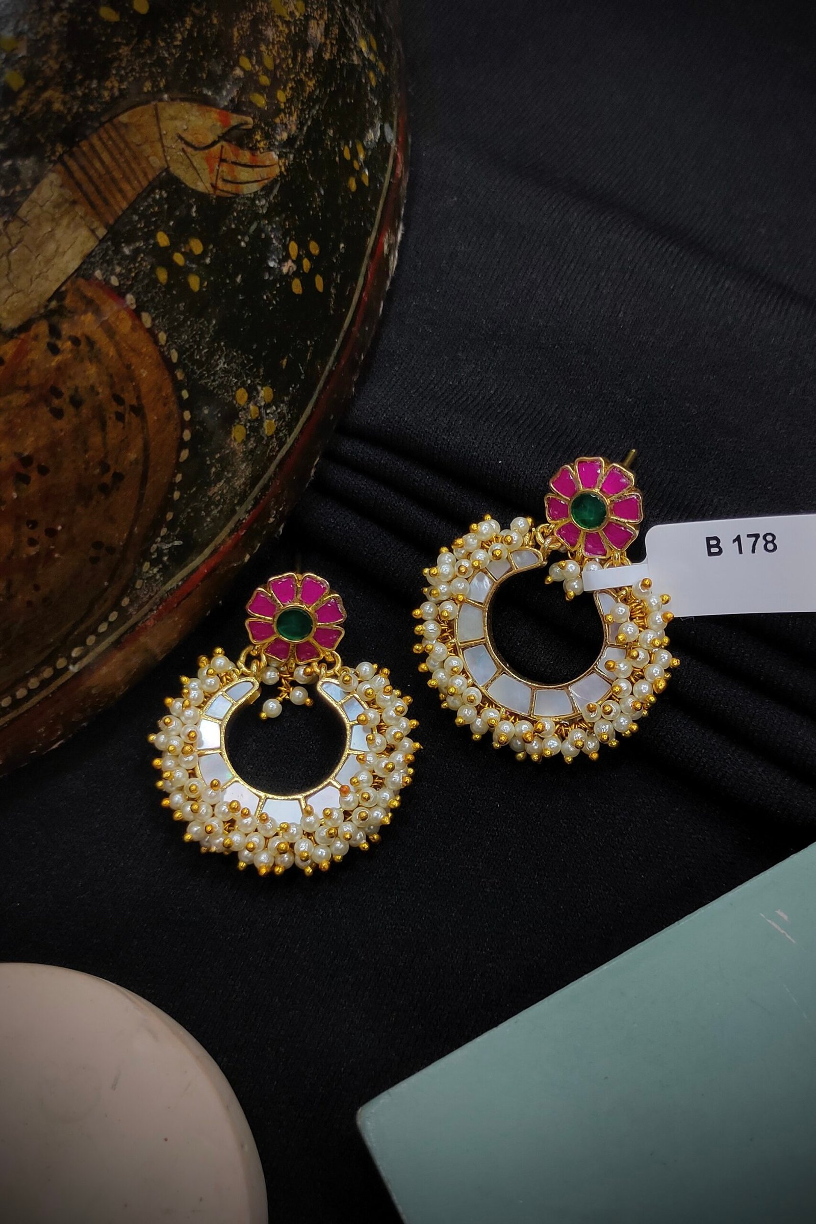 Embrace the opulence of our Pachi Kundan/Jadau Earrings, a fusion of tradition and luxury. Each earring showcases exquisite Pachi stones set delicately upon brass, radiating timeless allure. Finished with lustrous Gold plating, these earrings exude regal elegance. Elevate your ensemble with the enchanting beauty of our Pachi Kundan/Jadau Earrings, perfect for adding a touch of sophistication to any occasion. Experience the richness of Indian craftsmanship and indulge in the exquisite charm of these captivating pieces.