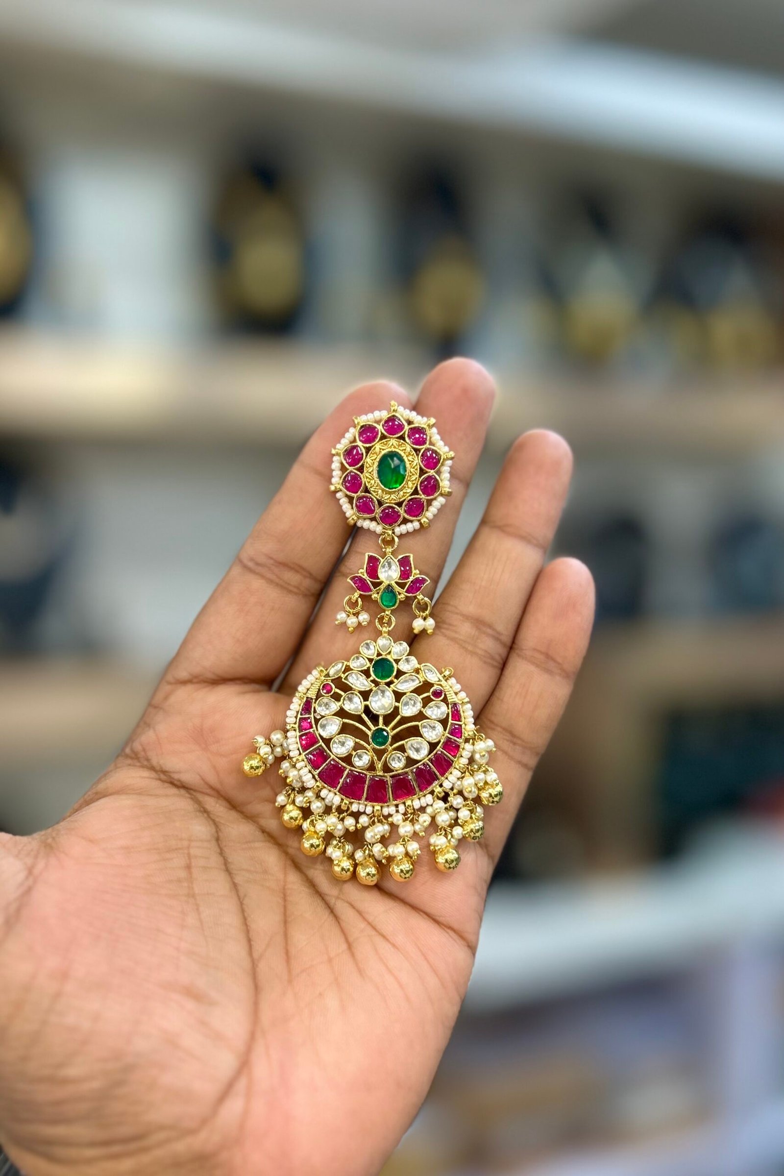 Embrace the opulence of our Pachi Kundan/Jadau Earrings, a fusion of tradition and luxury. Each earring showcases exquisite Pachi stones set delicately upon brass, radiating timeless allure. Finished with lustrous Gold plating, these earrings exude regal elegance. Elevate your ensemble with the enchanting beauty of our Pachi Kundan/Jadau Earrings, perfect for adding a touch of sophistication to any occasion. Experience the richness of Indian craftsmanship and indulge in the exquisite charm of these captivating pieces.