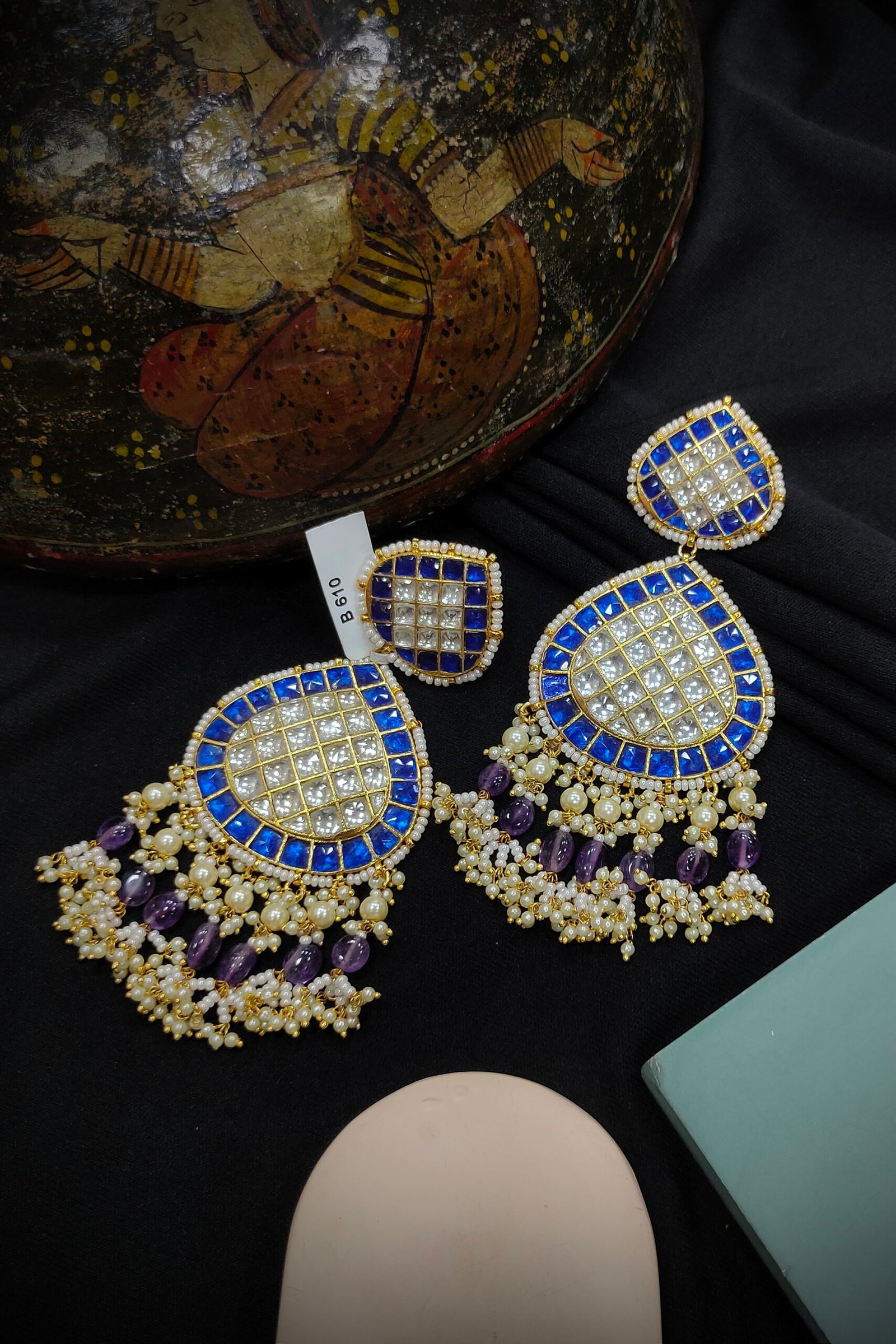 Embrace the opulence of our Pachi Kundan/Jadau Earrings, a fusion of tradition and luxury. Each earring showcases exquisite Pachi stones set delicately upon brass, radiating timeless allure. Finished with lustrous Gold plating, these earrings exude regal elegance. Elevate your ensemble with the enchanting beauty of our Pachi Kundan/Jadau Earrings, perfect for adding a touch of sophistication to any occasion. Experience the richness of Indian craftsmanship and indulge in the exquisite charm of these captivating pieces.