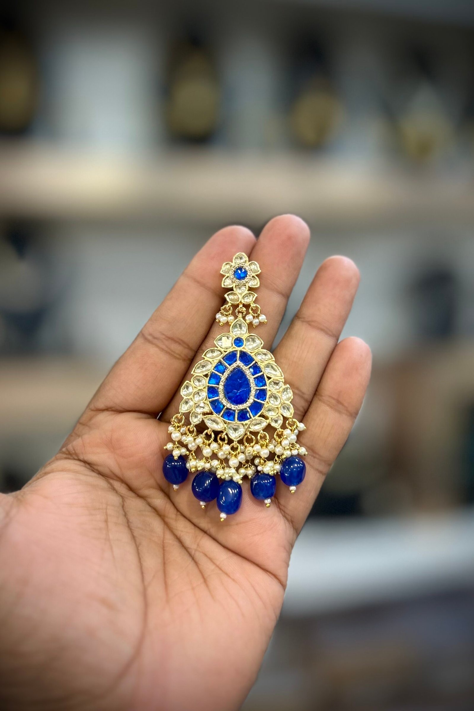 Embrace the opulence of our Pachi Kundan/Jadau Earrings, a fusion of tradition and luxury. Each earring showcases exquisite Pachi stones set delicately upon brass, radiating timeless allure. Finished with lustrous Gold plating, these earrings exude regal elegance. Elevate your ensemble with the enchanting beauty of our Pachi Kundan/Jadau Earrings, perfect for adding a touch of sophistication to any occasion. Experience the richness of Indian craftsmanship and indulge in the exquisite charm of these captivating pieces.