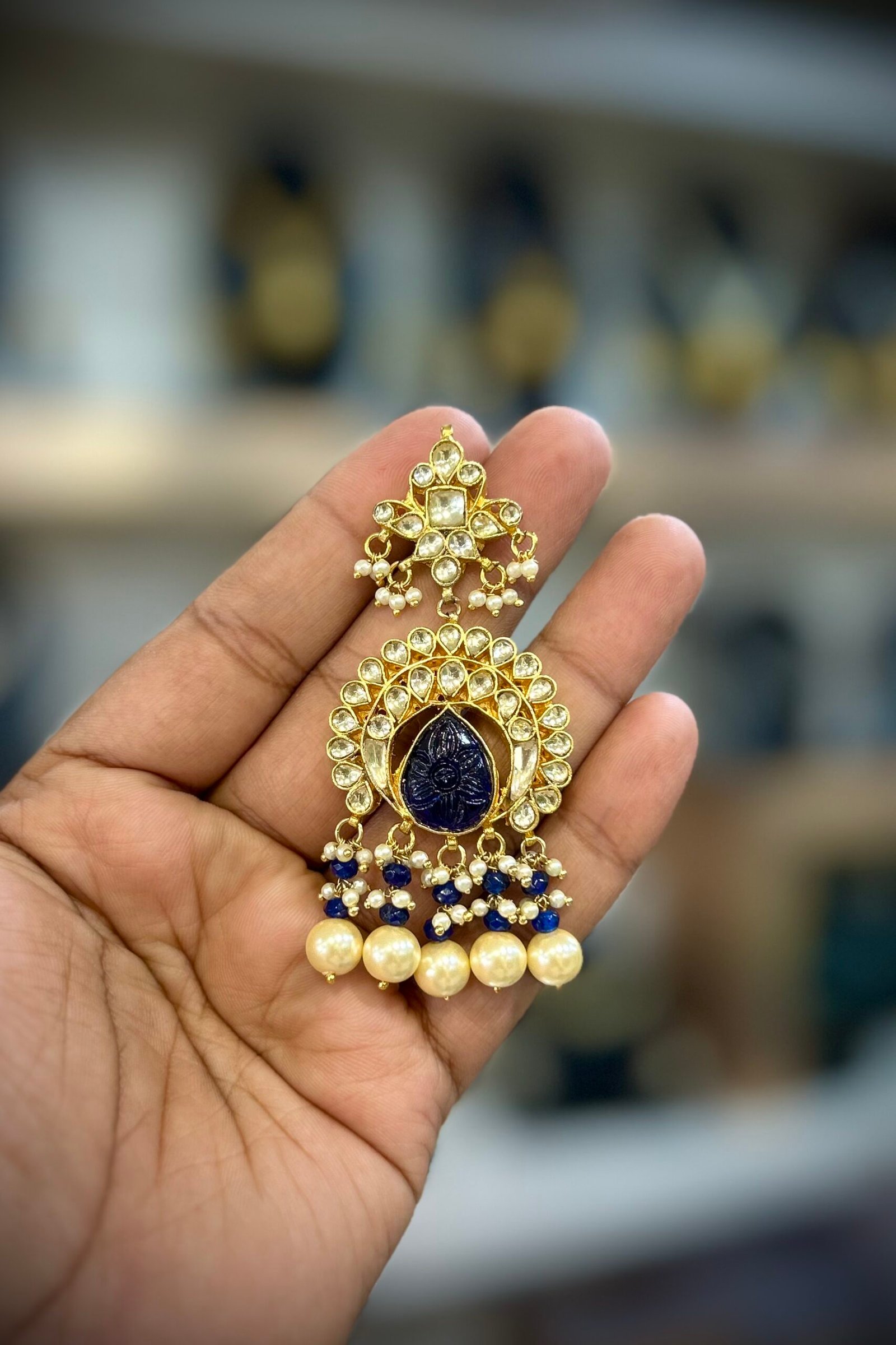Embrace the opulence of our Pachi Kundan/Jadau Earrings, a fusion of tradition and luxury. Each earring showcases exquisite Pachi stones set delicately upon brass, radiating timeless allure. Finished with lustrous Gold plating, these earrings exude regal elegance. Elevate your ensemble with the enchanting beauty of our Pachi Kundan/Jadau Earrings, perfect for adding a touch of sophistication to any occasion. Experience the richness of Indian craftsmanship and indulge in the exquisite charm of these captivating pieces.