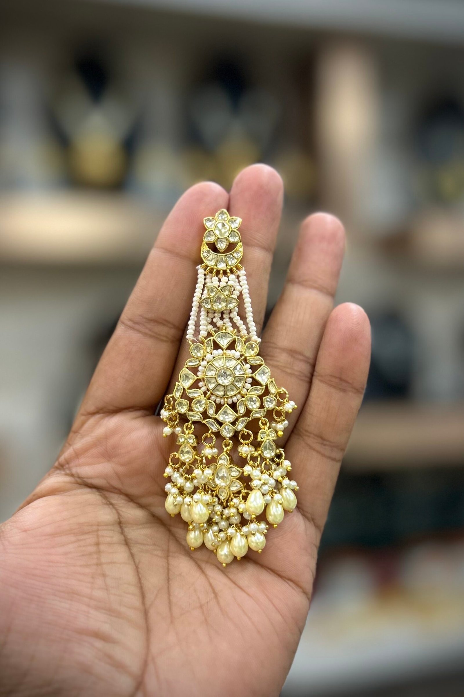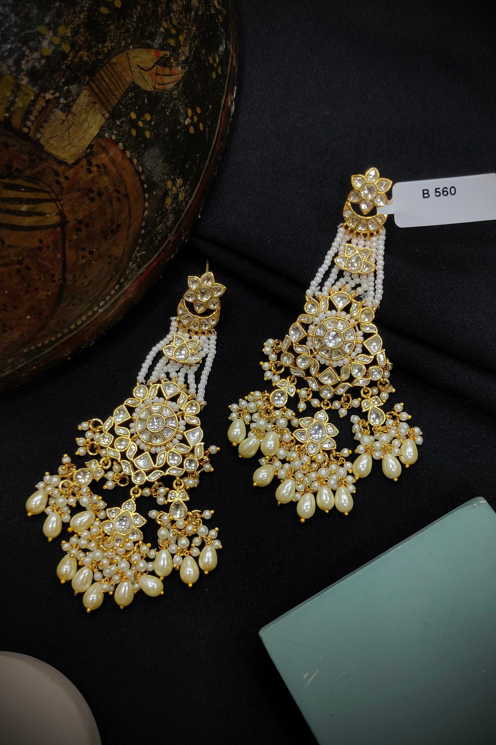 Embrace the opulence of our Pachi Kundan/Jadau Earrings, a fusion of tradition and luxury. Each earring showcases exquisite Pachi stones set delicately upon brass, radiating timeless allure. Finished with lustrous Gold plating, these earrings exude regal elegance. Elevate your ensemble with the enchanting beauty of our Pachi Kundan/Jadau Earrings, perfect for adding a touch of sophistication to any occasion. Experience the richness of Indian craftsmanship and indulge in the exquisite charm of these captivating pieces.