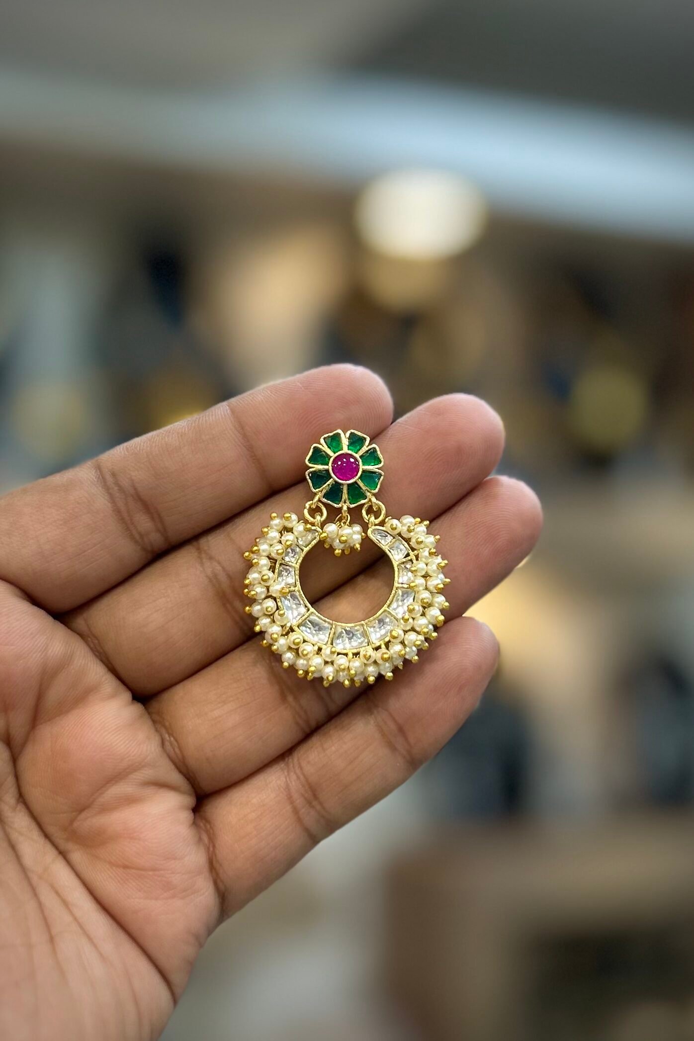 Embrace the opulence of our Pachi Kundan/Jadau Earrings, a fusion of tradition and luxury. Each earring showcases exquisite Pachi stones set delicately upon brass, radiating timeless allure. Finished with lustrous Gold plating, these earrings exude regal elegance. Elevate your ensemble with the enchanting beauty of our Pachi Kundan/Jadau Earrings, perfect for adding a touch of sophistication to any occasion. Experience the richness of Indian craftsmanship and indulge in the exquisite charm of these captivating pieces.