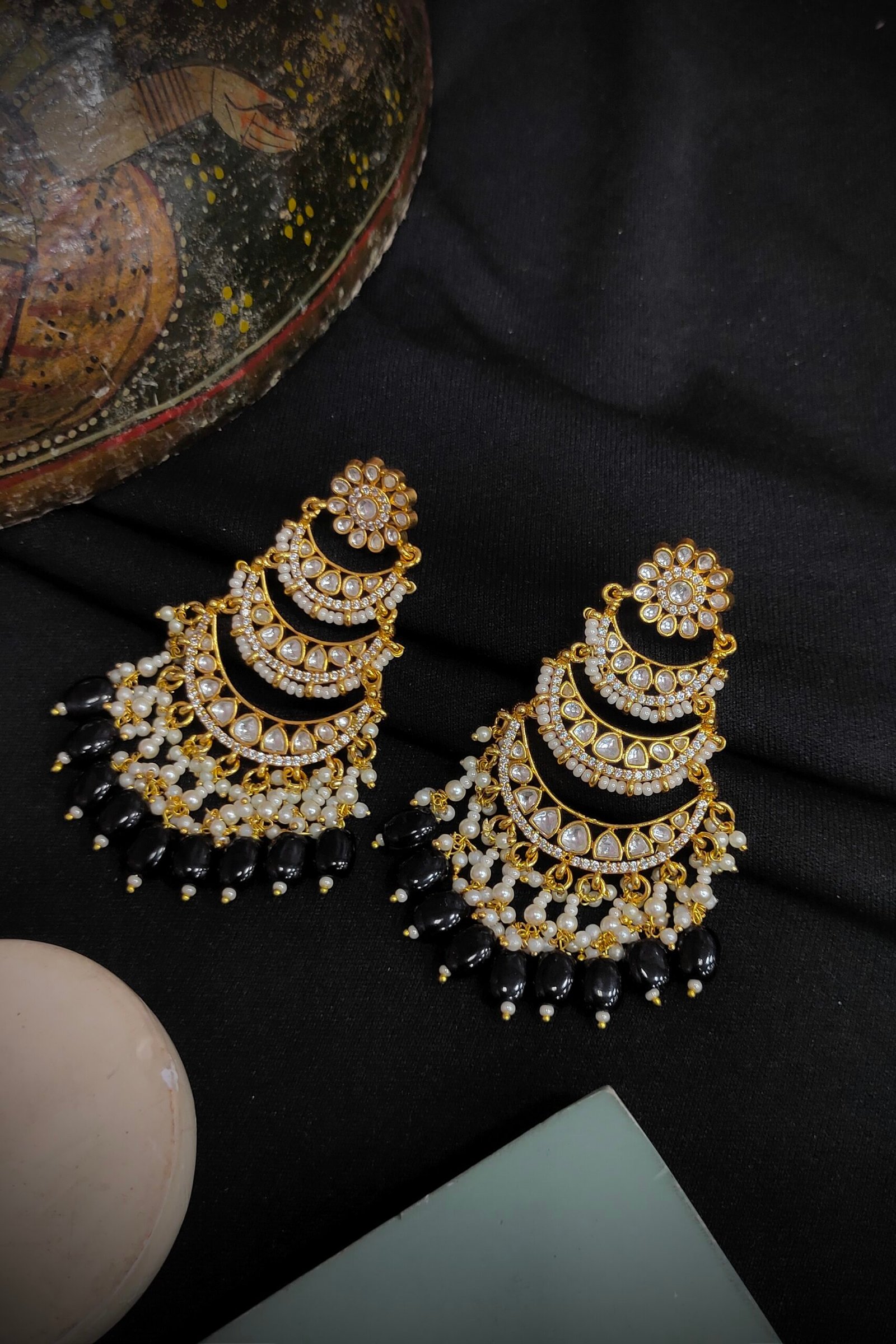 Embrace the opulence of our Pachi Kundan/Jadau Earrings, a fusion of tradition and luxury. Each earring showcases exquisite Pachi stones set delicately upon brass, radiating timeless allure. Finished with lustrous Gold plating, these earrings exude regal elegance. Elevate your ensemble with the enchanting beauty of our Pachi Kundan/Jadau Earrings, perfect for adding a touch of sophistication to any occasion. Experience the richness of Indian craftsmanship and indulge in the exquisite charm of these captivating pieces.