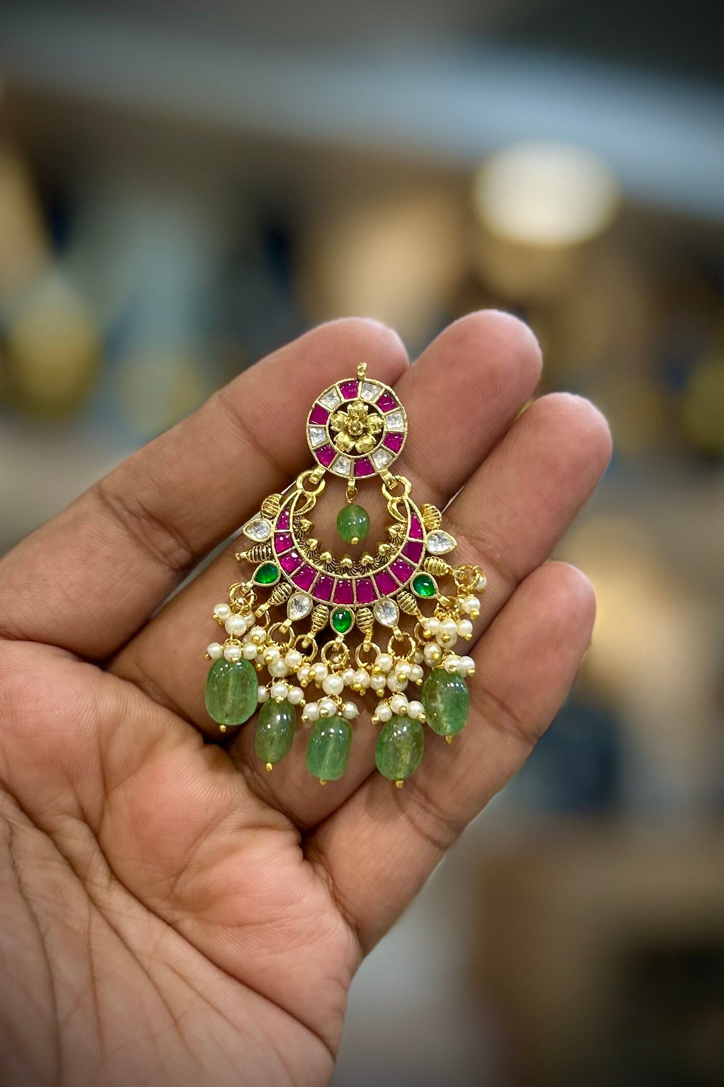 Embrace the opulence of our Pachi Kundan/Jadau Earrings, a fusion of tradition and luxury. Each earring showcases exquisite Pachi stones set delicately upon brass, radiating timeless allure. Finished with lustrous Gold plating, these earrings exude regal elegance. Elevate your ensemble with the enchanting beauty of our Pachi Kundan/Jadau Earrings, perfect for adding a touch of sophistication to any occasion. Experience the richness of Indian craftsmanship and indulge in the exquisite charm of these captivating pieces.