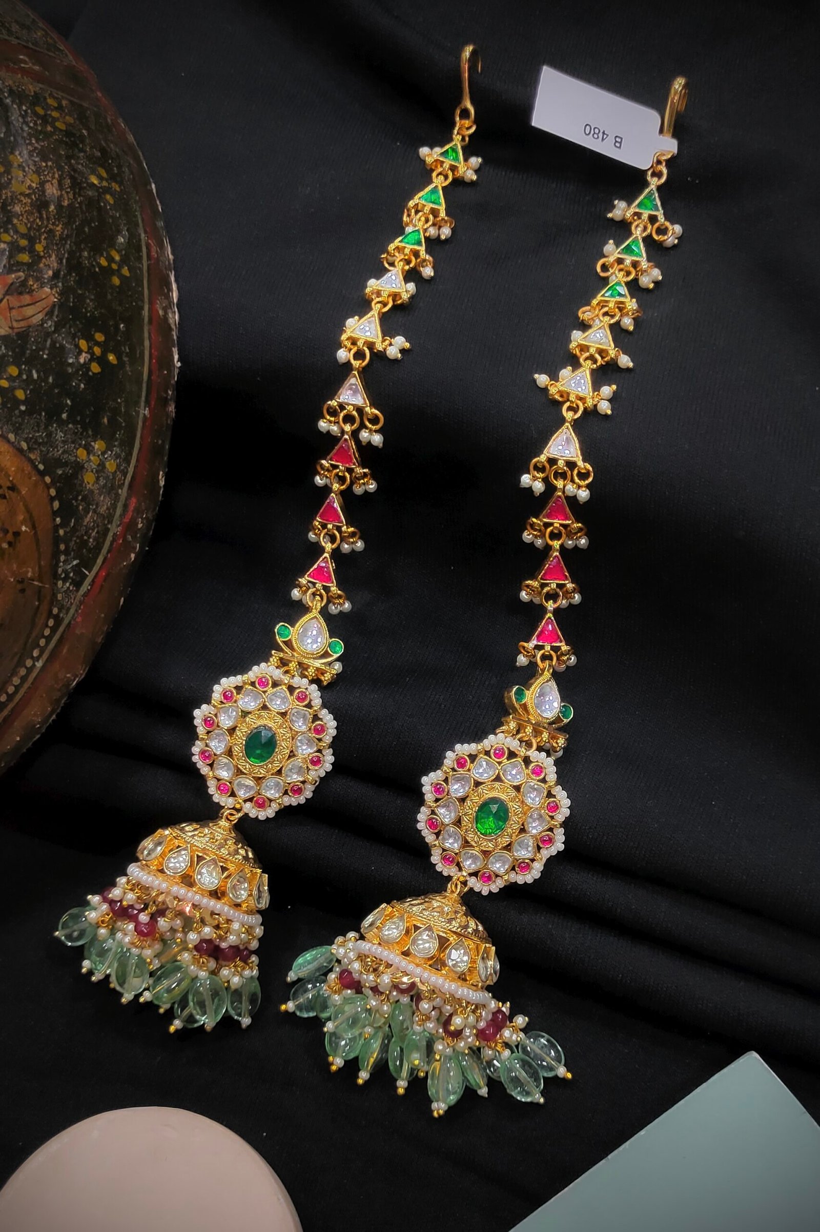 Pachi Kundan/ Jadau Jumkha Earrings (Kashmiri)