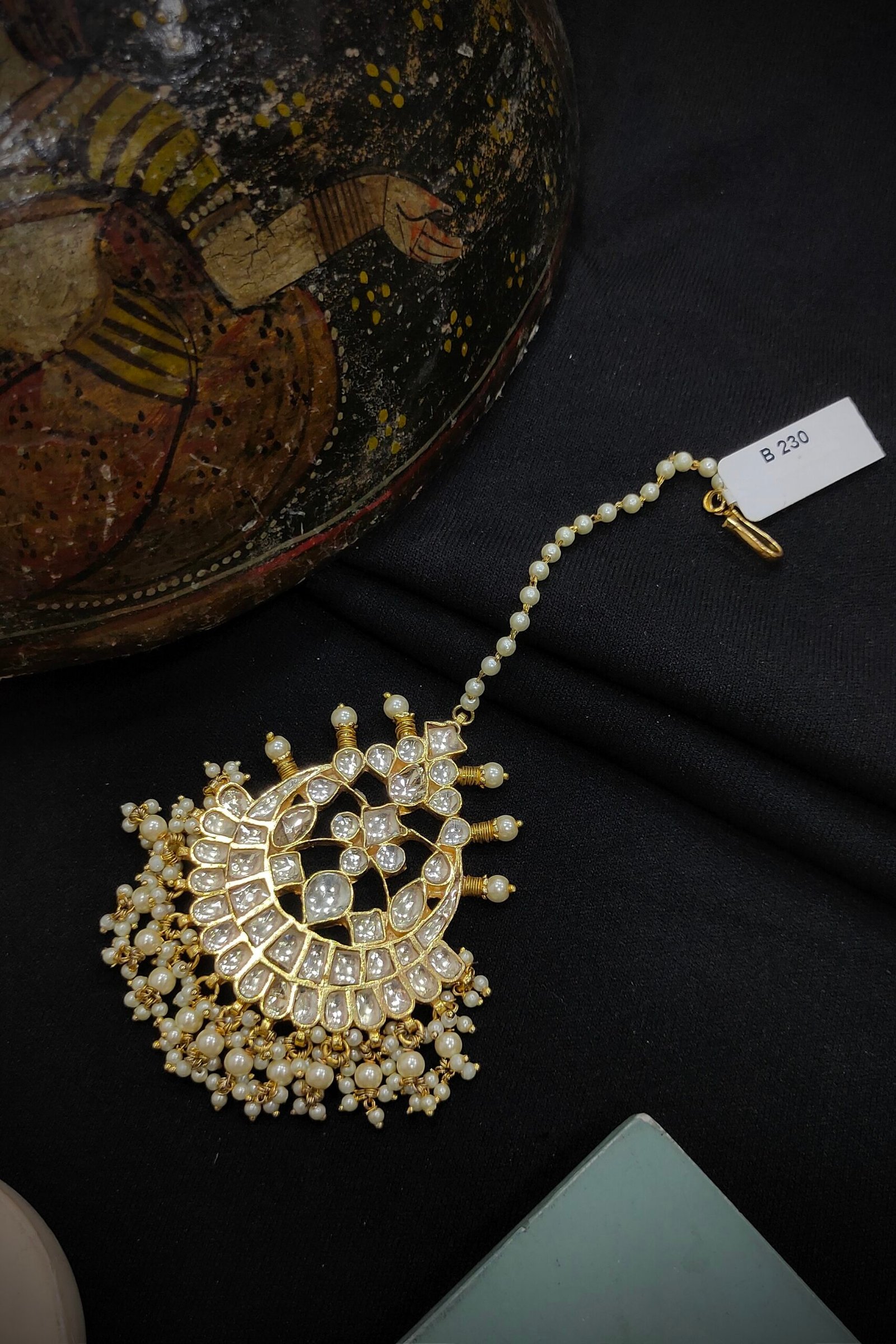 Explore our Pachi/Jadau Kundan MangTika, made from durable Brass and adorned with classic Rajwadi and Gold plating. This traditional piece adds a touch of timeless elegance to any outfit. Elevate your look with our Pachi/Jadau Kundan MangTika, a symbol of Indian heritage and sophistication.