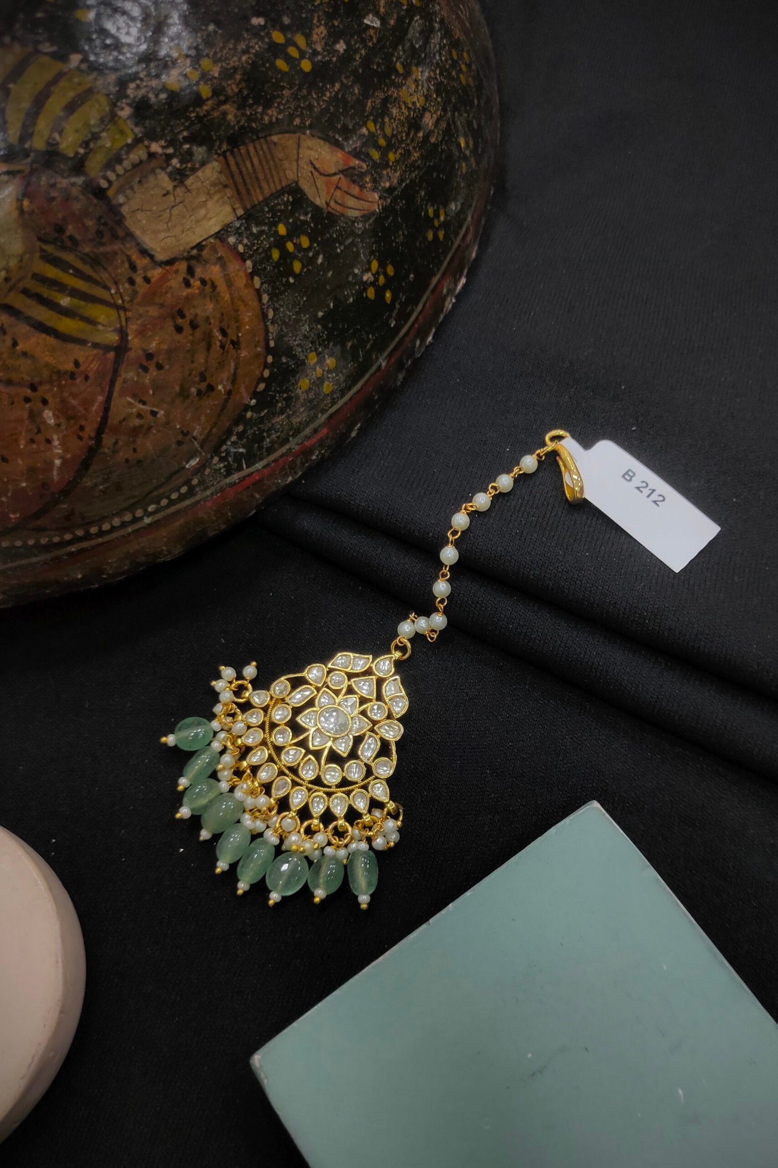 Explore our Pachi/Jadau Kundan MangTika, made from durable Brass and adorned with classic Rajwadi and Gold plating. This traditional piece adds a touch of timeless elegance to any outfit. Elevate your look with our Pachi/Jadau Kundan MangTika, a symbol of Indian heritage and sophistication.