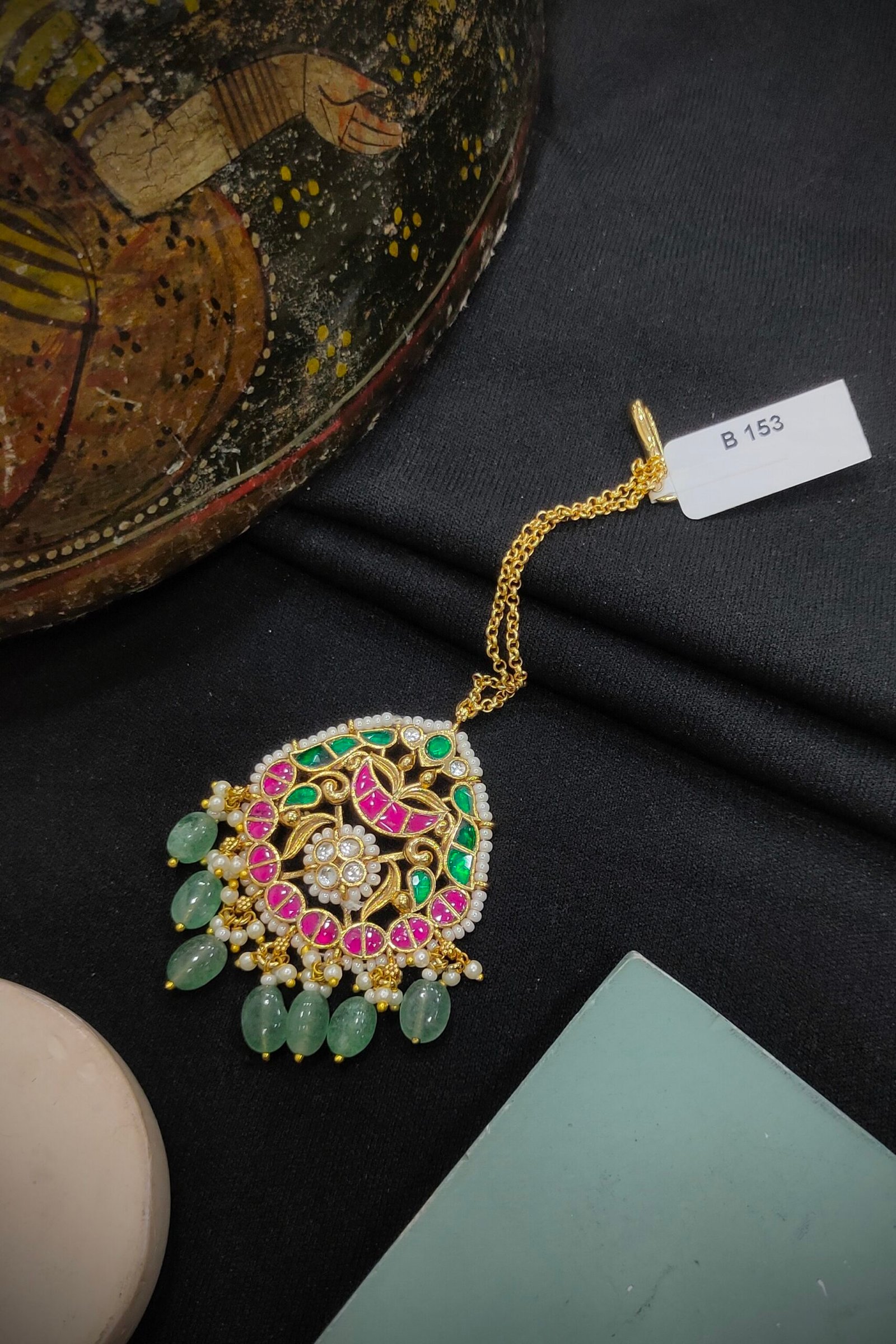 Explore our Pachi/Jadau Kundan MangTika, made from durable Brass and adorned with classic Rajwadi and Gold plating. This traditional piece adds a touch of timeless elegance to any outfit. Elevate your look with our Pachi/Jadau Kundan MangTika, a symbol of Indian heritage and sophistication.